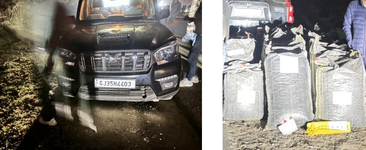 जिला पुलिस अधीक्षक उदयपुर श्री योगेश गोयल के निर्देशन में, अतिरिक्त पुलिस अधीक्षक खेरवाड़ा श्रीमती अंजना सुखवाल एवं वृताधिकारी वृत वल्लभनगर श्री राजेन्द्र सिंह जैन के सुपरविजन में थानाधिकारी खेरोदा श्री सुरेश विश्नोई मय पुलिस टीम द्वारा दिनांक 28.01.2026 को नेशनल हाईवे-48 पर वाना चौराहे के पास नाकाबंदी प्रारंभ की गई। नाकाबंदी के दौरान मंगलवाड़ से उदयपुर की ओर आ रही एक काले रंग की स्कॉर्पियो गाड़ी नंबर जीजे 35 एच 4403 को रोका गया। पुलिस नाकाबंदी को देखकर चालक ने अचानक गाड़ी को रॉन्ग साइड में मोड़ते हुए मंगलवाड़ की ओर तेज गति से भगा ली। स्थिति की गंभीरता को देखते हुए थानाधिकारी के इशारे पर वाना चौराहे से मंगलवाड़ की ओर तैनात कांस्टेबल कुलदीप ने स्टॉप स्टिक की सहायता से स्कॉर्पियो का आगे का टायर ब्रस्ट कर दिया। टायर ब्रस्ट होने के बावजूद चालक ने गाड़ी को रॉन्ग साइड में ही दौड़ाना जारी रखा, जिस पर पुलिस टीम ने पीछा कर बमुश्किल वाहन को रुकवाया। गाड़ी रुकते ही चालक व सहचालक सीट पर बैठे दोनों व्यक्ति अंधेरे का फायदा उठाकर जंगल की ओर फरार हो गए। पुलिस द्वारा स्कॉर्पियो की तलाशी लेने पर बीच व पीछे की दोनों सीटें खुली हुई पाई गईं, जिनमें काले रंग के प्लास्टिक के कट्टे भरे हुए थे। कट्टों को नीचे उतारकर गिनती करने पर कुल 22 कट्टों में अवैध डोडा चूरा भरा होना पाया गया, जिसका कुल वजन 468.270 किलोग्राम निकला। इसके अतिरिक्त वाहन में पांच अलग-अलग नंबरों की नंबर प्लेट भी बरामद की गईं, जिससे तस्करी की साजिश का खुलासा हुआ। इस संबंध में स्कॉर्पियो वाहन के चालक एवं सहचालक द्वारा अवैध डोडा चूरा का परिवहन करना तथा वाहन में अलग-अलग नंबर प्लेट रखना पाए जाने पर धारा 8/15 एनडीपीएस एक्ट एवं धारा 318(4), 338, 336(3), 340(2) भारतीय न्याय संहिता 2023 के तहत अपराध प्रमाणित पाए जाने से थाना खेरोदा पर प्रकरण संख्या 18/2026 दर्ज किया गया है। प्रकरण का अग्रिम अनुसंधान थाना कानोड़ के थानाधिकारी श्री मुकेशचंद पुनि द्वारा किया जा रहा है। मामले में अज्ञात अभियुक्तों की तलाश हेतु पुलिस की टीमें गठित कर संभावित ठिकानों पर दबिश दी जा रही है तथा अनुसंधान जारी है।