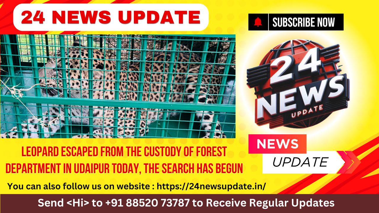 24 news update. On Monday afternoon, the leopard was caught in a cage in Lakhawali village, near Udaipur. The leopard had previously been taken to Sajjangarh Biological Park by the forest department team. The staff became aware of its escape around 8 AM, and a search for the animal has begun again.