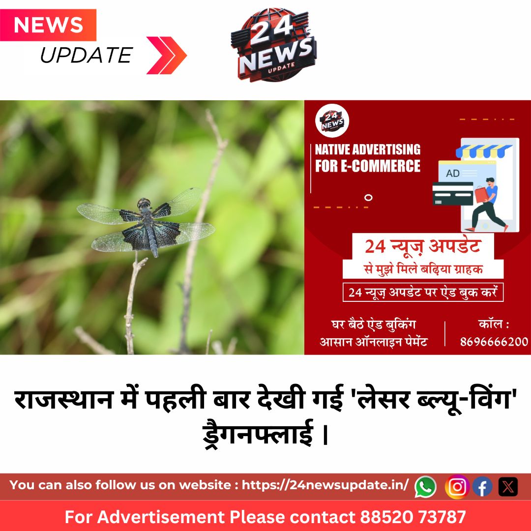 24 News Update जयपुर,29 जुलाई। नैसर्गिक सौंदर्यश्री से लकदक समृद्ध जैव विविधता वाली राजस्थान की धरती ने एक बार फिर जैव विविधता की दृष्टि से नया कीर्तिमान स्थापित किया है। हाल ही में उदयपुर जिले की झाड़ोल तहसील के ब्राह्मणों का खेरवाड़ा गांव में एक दुर्लभ ड्रैगनफ्लाई देखी गई है, जिसे वैज्ञानिक समुदाय में रायोथेमिस ट्रायन्गुलेरिस (Rhyothemis triangularis) के नाम से जाना जाता है। इस दुर्लभ प्रजाति की ड्रैगनफ्लाई की पहचान उदयपुर के सेवानिवृत्त वन अधिकारी और ख्यातिप्राप्त पर्यावरण वैज्ञानिक डॉ. सतीश कुमार शर्मा और फाउंडेशन फॉर इकोलॉजिकल सिक्योरिटी के पर्यावरणविद डॉ. अनिल सरसावन, मनोहर पवार एवं विनोद पालीवाल ने की है।