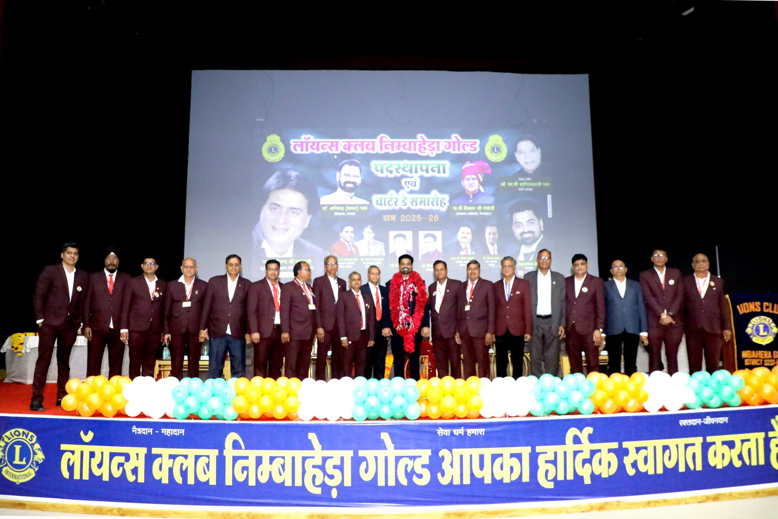 लॉयन्स क्बल निम्बाहेड़ा गोल्ड (प्रान्त 3233 ई-2) वर्ष 2025-26 के नवीन अध्यक्ष, पदाधिकारियों एवं संचालन मण्डल के पदस्थापना एवं चार्टर डे समारोह का आयोजन नगर के वण्डर टाउन हॉल में आयोजित हुआ। समारोह के अतिविशिष्ट अतिथि के रूप में मध्यप्रदेश के मनासा विधायक अनिरुद्ध माधव मारू, विशिष्ट अतिथि के रूप में उपखण्ड अधिकारी विकास पंचोली, उपप्रान्तपाल द्वितीय लायन सीपी विजयवर्गीय, पूर्व बहुप्रान्तीय अध्यक्ष लायन अरविंद चतुर, संभागीय अध्यक्ष लायन दिनेश बाबानी, क्षेत्रीय अध्यक्ष लायन विजय आगार मंचासीन रहे।