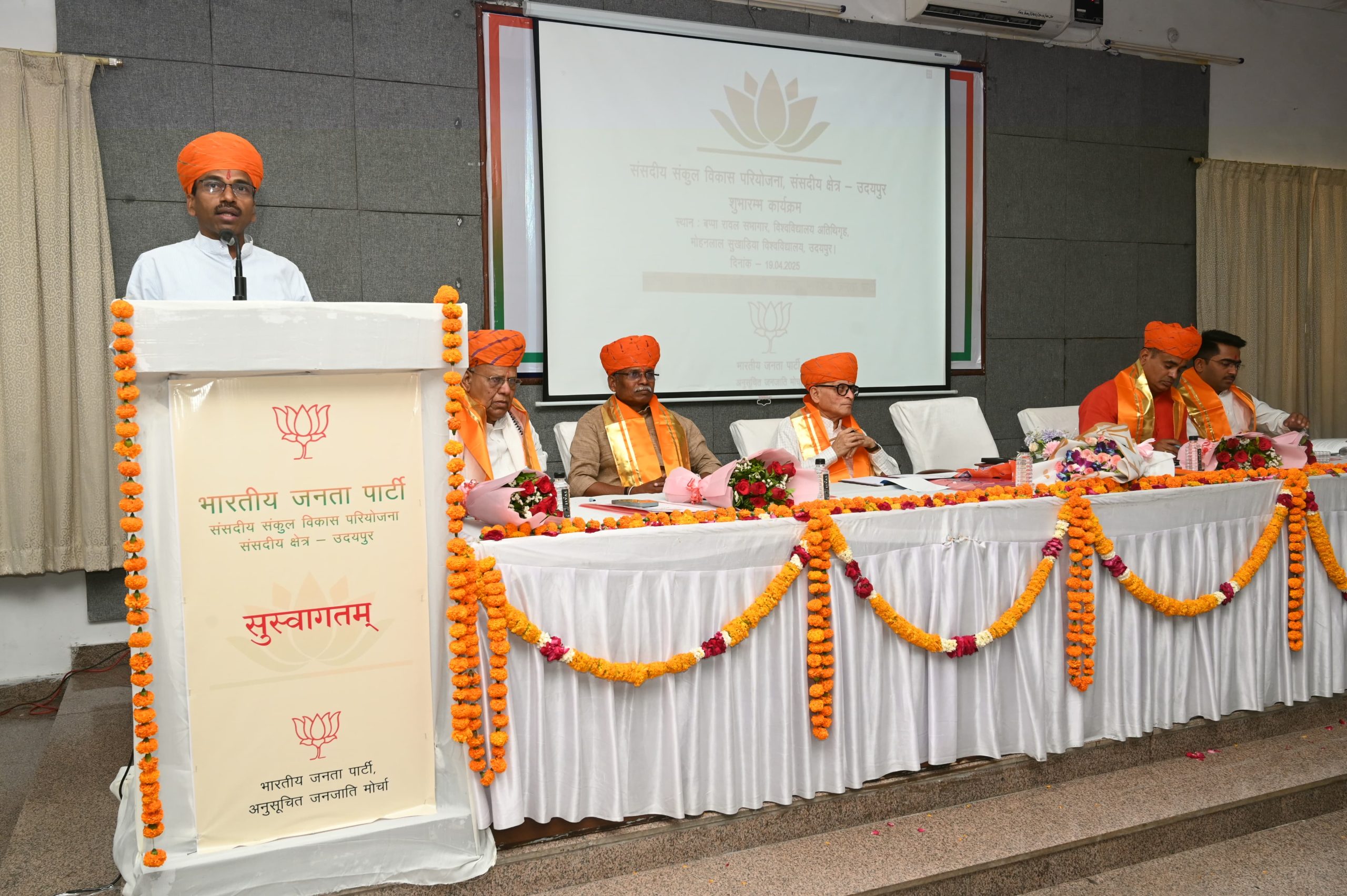 24 News Update उदयपुर। भारतीय जनता पार्टी के संघटक वी. सतीशजी ने कहा कि आजादी के बाद से उपेक्षित रहे जनजातीय क्षेत्र में लोकल रिसोर्स, लोकल टेलेन्ट और लोकल मार्केट को विकसित करने के उद्देश्य को लेकर संसदीय संकुल विकास परियोजना की परिकल्पना भाजपा द्वारा की गई है। इस परियोजना से जनजाति क्षेत्र में हो रहे पलायन को रोक कर गांव के प्राकृतिक संसाधनों का उपयोग करके रोजगार के साधन विकसित किए जा रहे हैं।