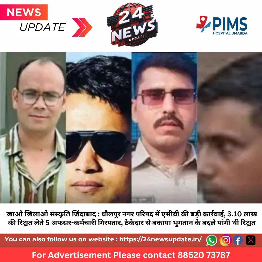 24 News Update भरतपुर. एसीबी एएसपी अमित सिंह के नेतृत्व में भ्रष्टाचार निरोधक ब्यूरो (एसीबी) ने गुरुवार को धौलपुर नगर परिषद में बड़ी कार्रवाई की। टीम ने 3 लाख 10 हजार रुपए की रिश्वत लेते हुए एईएन प्रिया झा, क्लर्क नीरज, ड्राइवर देवेंद्र, कैशियर भरत और संविदाकर्मी हरेंद्र को रंगे हाथ गिरफ्तार किया। इस मामले में नगर परिषद कमिश्नर अशोक शर्मा की भूमिका भी संदिग्ध मानी जा रही है।