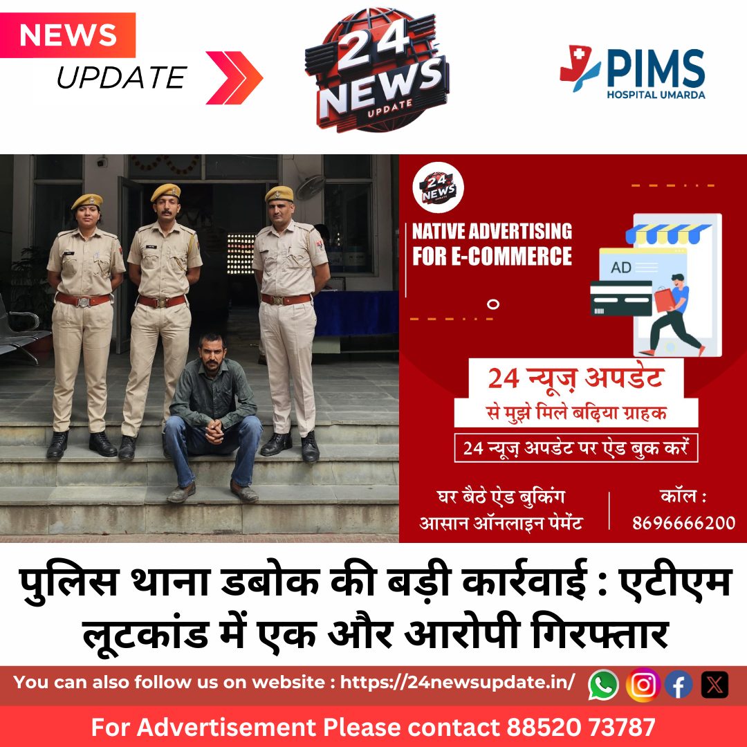 24 News Updateउदयपुर। पुलिस थाना डबोक ने एटीएम लूटकांड के मामले में एक और आरोपी को गिरफ्तार करने में सफलता हासिल की है। इस प्रकरण में अब तक कुल छह आरोपियों की गिरफ्तारी हो चुकी है।