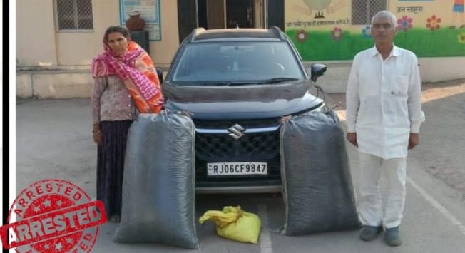 24 News Update चित्तौड़गढ़। नशीले पदार्थों की तस्करी के खिलाफ चलाए जा रहे अभियान के तहत पारसोली थाना पुलिस ने बड़ी सफलता हासिल की है। पुलिस ने नाकाबंदी के दौरान एक कार से 44.330 किलोग्राम अवैध अफीम डोडाचूरा जब्त करते हुए एक महिला सहित दो आरोपियों को गिरफ्तार किया है।जिला पुलिस अधीक्षक मनीष त्रिपाठी ने बताया कि अवैध मादक पदार्थों के परिवहन पर प्रभावी रोकथाम के लिए एएसपी रावतभाटा भगवत सिंह के निर्देशन में तथा डीएसपी बेगूं अंजली सिंह के सुपरविजन में पारसोली थाना प्रभारी शिवराज राव के नेतृत्व में विशेष नाकाबंदी की गई। इस दौरान एएसआई रामदयाल, कांस्टेबल जितेंद्र, सोनाराम, घनश्याम, प्रीतम, शिशराम एवं महिला कांस्टेबल किरण की टीम को राष्ट्रीय राजमार्ग संख्या-27 चित्तौड़गढ़–कोटा लेन पर कटुंडा सर्विस रोड पर तैनात किया गया। नाकाबंदी के दौरान कटुंडा अंडरब्रिज की ओर से आ रही मारुति सुजुकी फॉक्स कार को रुकवाया गया। कार में एक पुरुष और एक महिला सवार थे, जो पुलिस को देखकर घबरा गए। संदेह होने पर जब वाहन की तलाशी ली गई तो कार के अंदर पैरों के पास और तीन काले-पीले प्लास्टिक कट्टों में कुल 44.330 किलोग्राम अवैध अफीम डोडाचूरा बरामद हुआ। पुलिस ने मौके से कार को जब्त करते हुए चालक महादेव जाट (57) पुत्र हरलाल जाट निवासी अगरपुरा, थाना सदर भीलवाड़ा जिला भीलवाड़ा तथा उसके साथ बैठी महिला लवली देवी (55) पत्नी महादेव जाट, पुत्री काशीराम जाट निवासी लखमानियास, थाना कोटड़ी, हाल निवासी अगरपुरा, थाना सदर भीलवाड़ा जिला भीलवाड़ा को गिरफ्तार कर लिया। पारसोली थाना पुलिस ने दोनों आरोपियों के खिलाफ एनडीपीएस एक्ट के तहत मामला दर्ज कर लिया है। पुलिस अब यह पता लगाने में जुटी है कि जब्त अफीम डोडाचूरा कहां से लाया गया था और इसे कहां सप्लाई किया जाना था। मामले में आगे की जांच जारी है। Share this: Share on X (Opens in new window) X Share on Facebook (Opens in new window) Facebook More Email a link to a friend (Opens in new window) Email Share on WhatsApp (Opens in new window) WhatsApp Like this:Like Loading... Related Discover more from 24 News Update Subscribe to get the latest posts sent to your email. Type your email… Subscribe Post navigation बानसेन के हनुमान मंदिर से स्वर्ण कलश चोरी का सनसनीखेज खुलासा, हिस्ट्रीशीटर समेत दो आरोपी गिरफ्तार, 10–12 लाख का कलश बरामद व्यापारी की आंखों में मिर्ची डालकर दो लाख रुपये लेकर फरार बदमाश