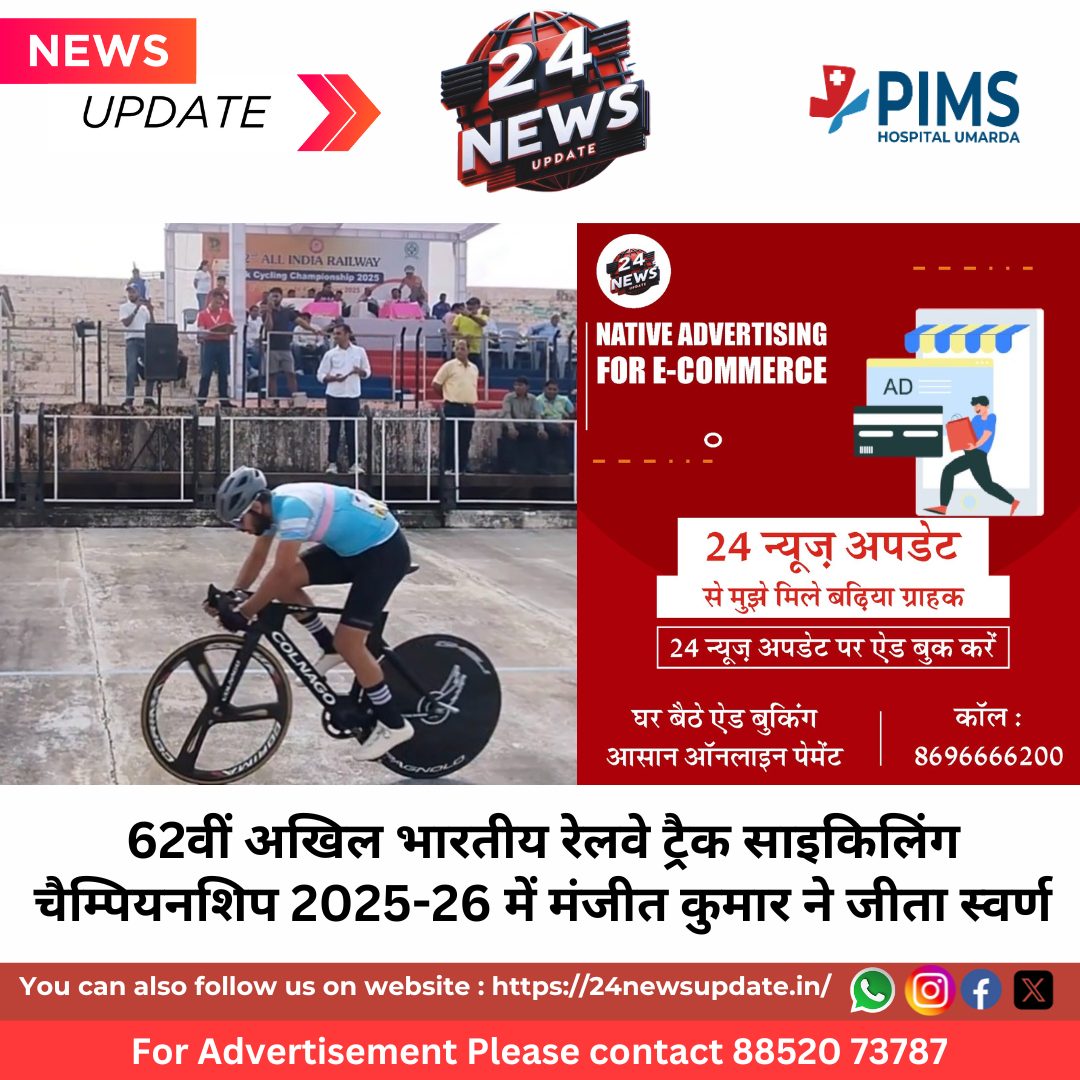 24 News Update जयपुर। सवाई मानसिंह स्टेडियम में आयोजित 62वीं अखिल भारतीय रेलवे ट्रैक साइकिलिंग चैम्पियनशिप 2025-26 के दूसरे दिन रोमांचक मुकाबले देखने को मिले। रेलवे खेलकूद संवर्धन बोर्ड, नई दिल्ली के तत्वाधान में उत्तर पश्चिम रेलवे स्पोर्ट्स एसोसिएशन द्वारा आयोजित इस प्रतियोगिता में 8 टीमों के लगभग 70 साइक्लिस्ट ने उत्कृष्ट प्रदर्शन किया।