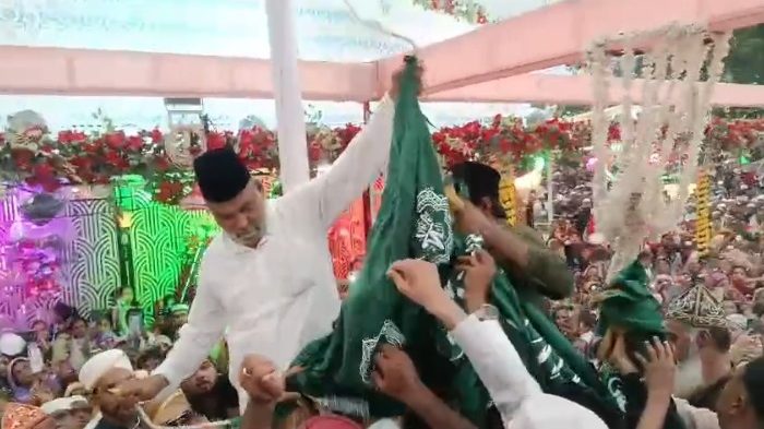 इस मौके पर अजमेर शरीफ से ख्वाजा गरीब नवाज की चादर आस्ताने पर पेश की गई। परचमकुशाई के बाद हजारों की संख्या में मौजूद जायरीनों में लंगर तक्सीम किया गया।