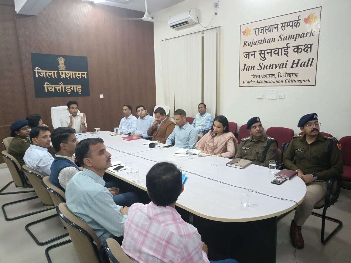 24 न्यूज़ अपडेट चित्तौड़गढ़। जिले में होली, धूलंडी, रंग तेरस, रमजान सहित विभिन्न त्योहारों पर शांति एवं सौहार्द बनाए रखने को लेकर जिला कलक्टर आलोक रंजन एवं जिला पुलिस अधीक्षक सुधीर जोशी ने आज डीओआईटी के वीसी कक्ष में अधिकारियों की बैठक ली एवं आवश्यक निर्देश दिए।