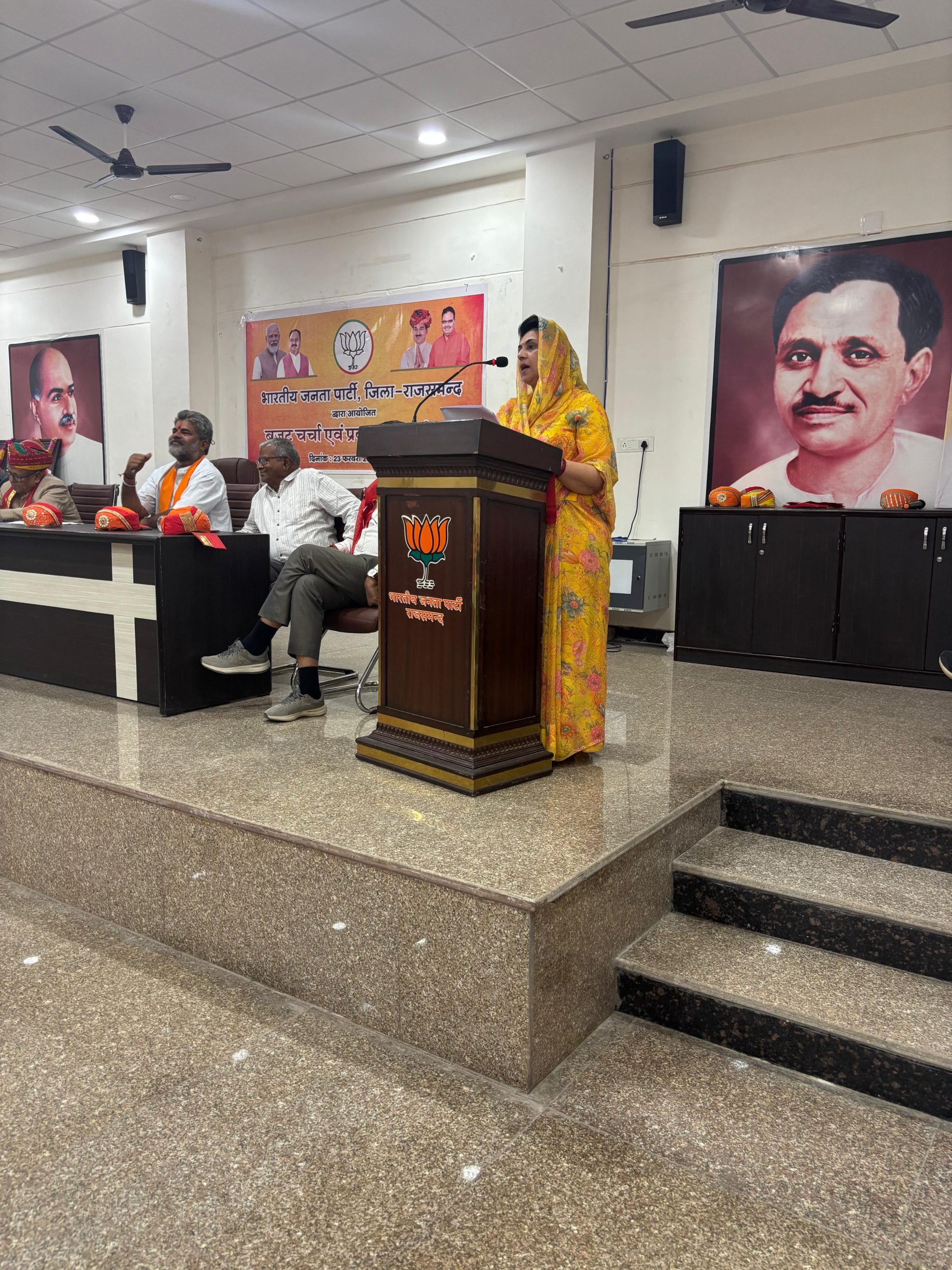 24 न्यूज अपडेट. राजसमंद। सांसद महिमा कुमारी मेवाड़ ने रविवार को भाजपा कार्यालय में आयोजित प्रबुद्धजन सम्मेलन में शिरकत करते हुए प्रधानमंत्री नरेंद्र मोदी की जनकल्याणकारी योजनाओं और केंद्रीय बजट 2025-26 की घोषणाओं को आमजन तक पहुंचाने का आह्वान किया। इस दौरान राजस्थान धरोहर प्राधिकरण अध्यक्ष ओंकार सिंह लाखावत, भाजपा जिलाध्यक्ष जगदीश पालीवाल, कुंभलगढ़ विधायक सुरेन्द्र सिंह राठौड़, राजसमंद विधायक दीप्ति माहेश्वरी, जिला प्रमुख रतनी देवी जाट, पूर्व जिलाध्यक्ष मान सिंह बारहठ सहित बड़ी संख्या में पदाधिकारी, कार्यकर्ता आदि उपस्थित रहे।