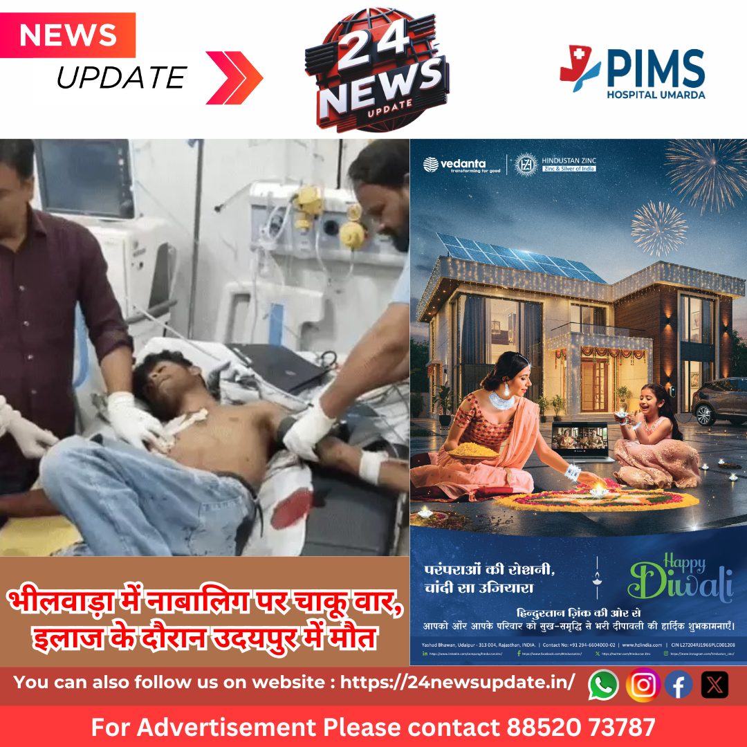 24 न्यूज अपडेट, भीलवाड़ा। भीलवाड़ा के प्रताप नगर थाना क्षेत्र में शनिवार रात एक नाबालिग पर उसके पुराने दोस्त ने चाकू से हमला कर दिया। गंभीर रूप से घायल युवक को महात्मा गांधी अस्पताल में भर्ती कराया गया, लेकिन हालत बिगड़ने के बाद उसे उदयपुर रेफर किया गया, जहां इलाज के दौरान उसने दम तोड़ दिया।
