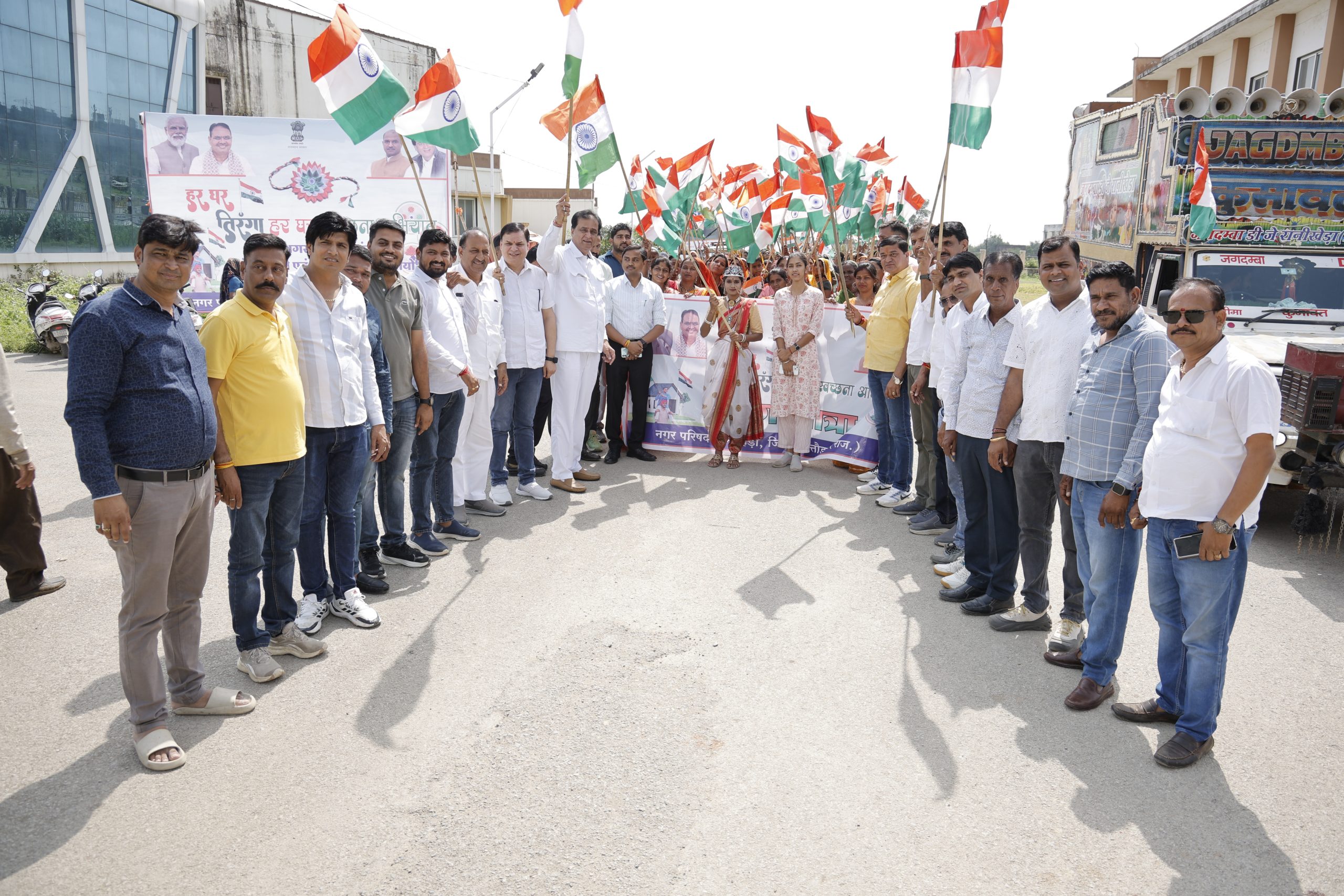 24 News Update निम्बाहेड़ा कविता पारख। निम्बाहेड़ा के वण्डर टाउन हॉल परिसर से नगर परिषद के शहरी रोजगार योजना मनरेगा की कार्यकर्ताओं के द्वारा 15 अगस्त स्वतंत्रता दिवस से पूर्व आमजन में जागरूकता के लिए तिरंगा यात्रा निकाली गई। इस तिरंगा यात्रा को विधायक कृपलानी ने तिरंगा दिखाकर रवाना किया। यात्रा के दौरान डीजे पर देशभक्ति गीतों के साथ महिलाएं हाथों में तिरंगा लिए चल रही थी।इस अवसर पर पूर्व विधायक अशोक नवलखा, जिला प्रमुख गब्बर सिंह अहीर, पूर्व भाजपा नगर अध्यक्ष नितिन चतुर्वेदी, भाजपा नगर अध्यक्ष कपिल चौधरी, जनप्रतिनिधियों सहित कार्यकर्ता आदि मौजूद रहे। Share this: Share on X (Opens in new window) X Share on Facebook (Opens in new window) Facebook More Email a link to a friend (Opens in new window) Email Share on WhatsApp (Opens in new window) WhatsApp Like this:Like Loading... Related Discover more from 24 News Update Subscribe to get the latest posts sent to your email. Type your email… Subscribe Post navigation बहनों का सुरक्षा-सम्मान पर्व पर हुआ सम्मान दिवस का आयोजन सरकार की हर योजना का लाभ आमजन तक पहुंचाने में आंगनबाड़ी कार्यकर्ताओं की अहम भूमिका- विधायक कृपलानी निंबाहेड़ा समेल महादेव संगम स्थान जलिया पिपलिया बम- बम भोले के जयकारे और देवी दुर्गा, दशा माता की पूजा, अर्चना की जा रही है