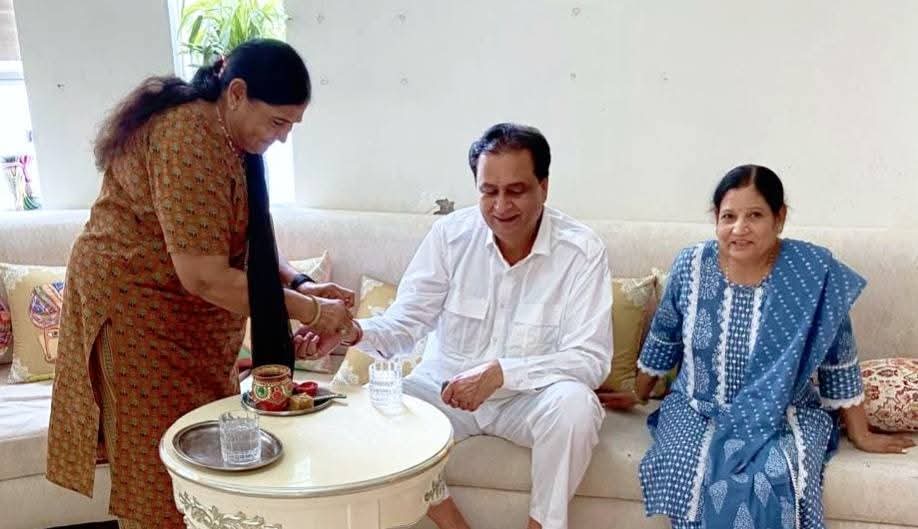 24 news update निम्बाहेड़ा कविता पारख। भाई-बहन के अटूट स्नेह एवं अखण्ड विश्वास के पावन पर्व रक्षाबंधन के अवसर पर पूर्व यूडीएच मंत्री एवं विधायक श्रीचंद कृपलानी ने समस्त विधानसभा सहित प्रदेशवासियों को रक्षाबंधन पर्व पर सुखमय जीवन के लिए शुभकामनाएं दी।