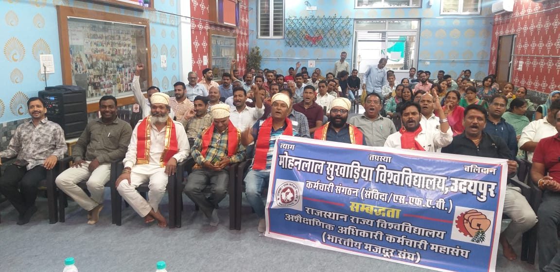 उदयपुर, 18 जून 2025। मोहनलाल सुखाड़िया विश्वविद्यालय कर्मचारी संगठन (संविदा/एसएफएबी), भारतीय मजदूर संघ, उदयपुर द्वारा बुधवार सायं 5:00 बजे अशोक नगर स्थित श्री तरुण सागर भवन सभागार में स्नेह मिलन कार्यक्रम का भव्य आयोजन किया गया। इस अवसर पर संगठन के लगभग 200 सदस्य उपस्थित रहे।