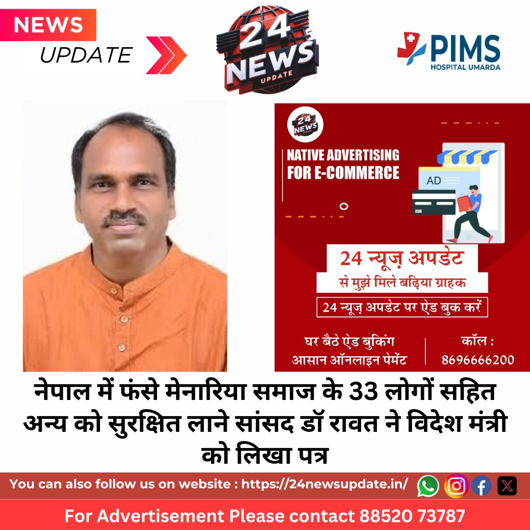 24 News Update उदयपुर। सांसद डॉ मन्नालाल रावत ने बुधवार को विदेश मंत्री एस. जयशंकर को ईमेल द्वारा पत्र भेजकर नेपाल में अलग-अलग जगह फंसे उदयपुर के नागरिकों की सुरक्षा और उनको वापस उदयपुर लाने के इंतजाम करने का आग्रह किया है। इस पर मंत्रालय ने कार्रवाई भी शुरु कर दी है।सांसद डॉ रावत ने बताया कि उनको अखिल भारतीय मेनारिया समाज के पूर्व अध्यक्ष तथा मेनारिया समाज के स्थानीय लोगों ने जानकारी दी कि उदयपुर के पानेरियो की मादड़ी से 33 सदस्य यात्रा पर नेपाल गया था जो अभी पशुपतिनाथ मंदिर, काठमांडू के पास तीन दिन से एक होटल में फंसे हुए हैं। समाज की ओर से सभी 33 लोगों के नाम की सूची उपलब्ध करवाई गई। इनके अलावा उदयपुर के कुछ लोगों के नेपाल में फंसे होने की जानकारी मिली है। इस पर उन्होंने मेनारिया समाज के लोगों की सूची सहित अन्य लोगों के बारे में विदेश मंत्री को ईमेल द्वारा पत्र भेजकर सभी लोगों की सुरक्षा और उन्हें वापस सुरक्षित उदयपुर लाने के लिए आग्रह किया है। सांसद डॉ रावत ने बताया कि इस पर विदेश मंत्रालय की ओर से कार्रवाई शुरु कर दी गई है सभी लोगों के जल्द सुरक्षित भारत लौटने की संभावना है।डॉ सांसद रावत ने कहा कि नेपाल में फंसे उदयपुर के अन्य लोगों के बारे में जानकारी जुटाई जा रही है और विस्तृत जानकारी मिलने पर विदेश मंत्रालय को अवगत करवाया जाएगा। उन्होंने विश्वास जताया कि भारत सरकार देश के एक-एक व्यक्ति की सुरक्षा और उनकी देश वापसी को लेकर गंभीरता से प्रयास कर रही है। इसके लिए हेल्प सेंटर भी बनाए गए हैं। राजस्थान पुलिस ने भी नेपाल में फंसे लोगों के लिए विशेष सेल की स्थापना की है जिसके हेल्पलाइन नंबर 0141-2740832 तथा 01412741807 हैं। त्वरित मदद के लिए व्हाटसअप नंबर 9784942702 भी जारी किए गए हैं। Share this: Share on X (Opens in new window) X Share on Facebook (Opens in new window) Facebook More Email a link to a friend (Opens in new window) Email Share on WhatsApp (Opens in new window) WhatsApp Like this:Like Loading... Related Discover more from 24 News Update Subscribe to get the latest posts sent to your email. Type your email… Subscribe Post navigation राजस्थान विद्यापीठ विश्वविद्यालय : भारतीय चिंतन में महिला’ विषय पर 14 सितम्बर को राष्ट्रीय संगोष्ठी, डिप्टी सीएम देंगी शुभारंभ उदयपुर के औद्योगिक नवाचार साकार कर रहे विकसित भारत का लक्ष्य: मनोज जोशी