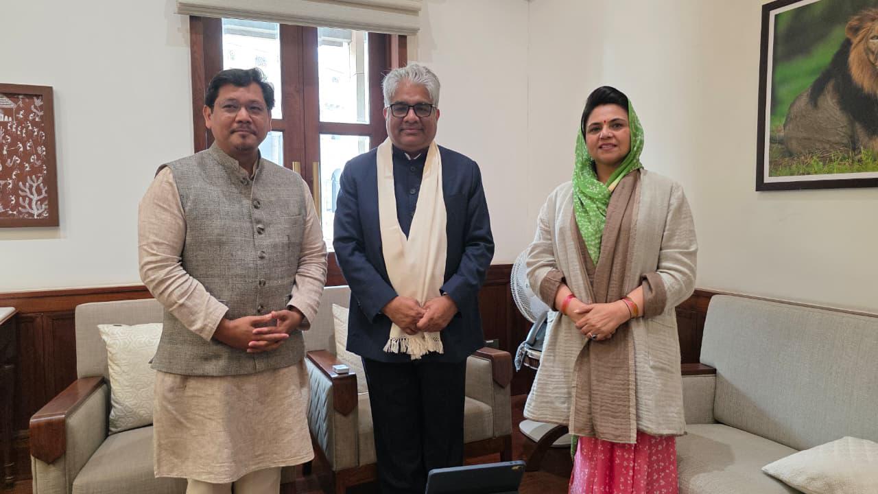 24 News Update नई दिल्ली। राजसमंद सांसद श्रीमती महिमा कुमारी मेवाड़ ने संसद भवन, नई दिल्ली में माननीय केंद्रीय पर्यावरण, वन एवं जलवायु परिवर्तन मंत्री श्री भूपेंद्र यादव जी से शिष्टाचार भेंट की। इस अवसर पर उन्होंने राजसमंद संसदीय क्षेत्र में पर्यावरण संरक्षण, वन संवर्धन एवं जलवायु परिवर्तन से जुड़े विभिन्न विकास कार्यों के लिए केंद्र सरकार द्वारा किए जा रहे प्रयासों हेतु मंत्री जी का आभार व्यक्त किया।