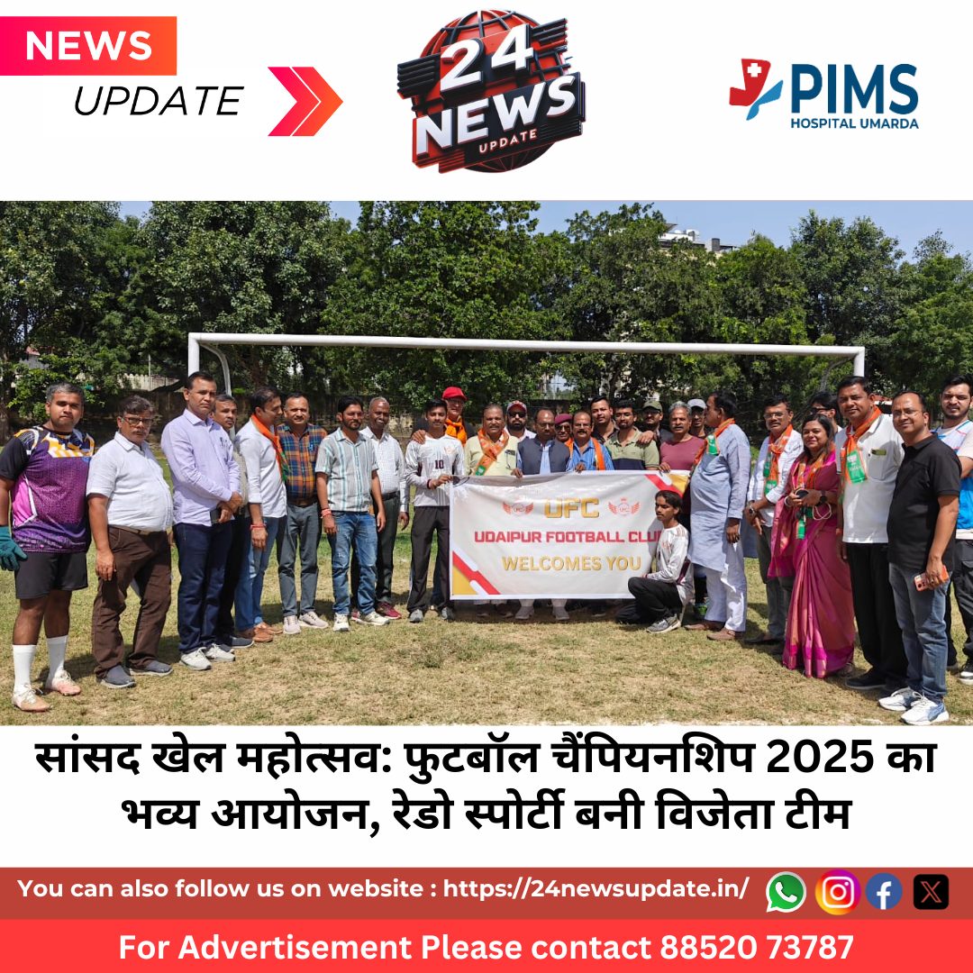24 News Update उदयपुर। सांसद खेल महोत्सव के अंतर्गत भारतीय जनता पार्टी शहर जिला उदयपुर एवं उदयपुर फुटबॉल क्लब के संयुक्त तत्वावधान में एम.बी. कॉलेज ग्राउंड पर फुटबॉल चैंपियनशिप 2025 का भव्य शुभारंभ हुआ। यह प्रतियोगिता दोनों विधानसभाओं एवं 12 मंडलों के बीच फ्रेंडली फुटबॉल मैच के रूप में आयोजित की गई।