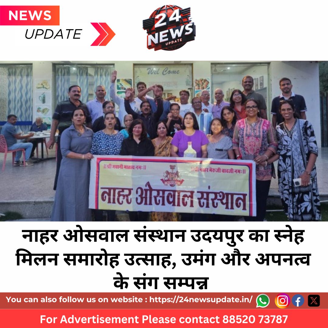 24 News Update उदयपुर, 7 जुलाई। नाहर ओसवाल संस्थान, उदयपुर द्वारा आयोजित स्नेह मिलन समारोह एक आत्मीय, उल्लासपूर्ण और पारिवारिक वातावरण में बलीचा स्थित एक रिसॉर्ट में भव्यता के साथ सम्पन्न हुआ। कार्यक्रम की अध्यक्षता संस्थान के अध्यक्ष नंदलाल नाहर ने की। अपने स्वागत भाषण में उन्होंने समाज की एकजुटता और आपसी स्नेह के ऐसे आयोजनों को समय की आवश्यकता बताते हुए सभी सदस्यों से इन आयोजनों में नियमित सहभागिता की अपील की। कार्यक्रम के विविध मनोरंजनात्मक सत्रों में बच्चों से लेकर बुजुर्गों तक ने बढ़-चढ़कर भाग लिया। किरण नाहर और शिल्पा नाहर के सान्निध्य में आयोजित गेम्स, डांस, जल क्रीड़ा, हास्य व्यंग्य और अन्य रोचक गतिविधियों ने सभी को आनंद और स्मृतियों से भर दिया। पूरे आयोजन में आपसी आत्मीयता और पारिवारिक जुड़ाव की अद्भुत झलक देखने को मिली। संस्थान के सचिव महावीर नाहर ने सभी प्रतिभागियों का आभार व्यक्त करते हुए भविष्य में भी इसी प्रकार की सक्रिय सहभागिता बनाए रखने का आग्रह किया, जिससे संस्था में पारस्परिक प्रेम और संगठनात्मक मजबूती बनी रहे।