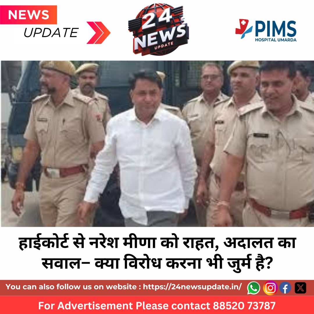 24 News Update जयपुर/झालावाड़। झालावाड़ में पिपलोदी सरकारी स्कूल हादसे (25 जुलाई) के विरोध में गिरफ्तार किए गए नरेश मीणा को राजस्थान हाईकोर्ट से जमानत मिल गई है। जस्टिस अशोक कुमार जैन की अदालत ने गुरुवार को सुनवाई करते हुए उन्हें जमानत पर रिहा करने का आदेश दिया। इस दौरान अदालत ने मौखिक टिप्पणी में सवाल उठाया—“क्या धरना-प्रदर्शन करना भी अब अपराध हो गया है?”हादसे के बाद प्रदर्शन और गिरफ्तारी25 जुलाई को स्कूल की बिल्डिंग का हिस्सा गिरने से 7 बच्चों की मौत हो गई थी। इसके विरोध में झालावाड़ के SRG हॉस्पिटल के बाहर धरना-प्रदर्शन चल रहा था। नरेश मीणा दोपहर बाद अपने समर्थकों के साथ मौके पर पहुंचे और प्रदर्शन में शामिल हुए। उसी दिन पुलिस ने उन्हें शांति भंग करने के आरोप में गिरफ्तार कर लिया। अगले दिन अस्पताल के मेडिकल सुपरिंटेंडेंट ने रिपोर्ट दर्ज करवाई कि नरेश और उनके साथियों ने मेडिकल सुविधा में बाधा डाली और एंबुलेंस व ICU स्टाफ को अस्पताल में प्रवेश करने से रोका। इसके आधार पर पुलिस ने 26 जुलाई को नरेश को थाने से ही दोबारा गिरफ्तार कर लिया।सरकार और बचाव पक्ष की दलीलेंसुनवाई के दौरान सरकार की ओर से कहा गया कि नरेश की आपराधिक पृष्ठभूमि रही है और पहले भी वे हिंसक घटनाओं में शामिल रहे हैं। इस पर बचाव पक्ष के वकीलों—फतेहराम मीणा और रजनीश गुप्ता—ने दलील दी कि नरेश 12 मामलों में पहले ही बरी हो चुके हैं, जबकि बाकी बचे मामले राजनीतिक कारणों से दर्ज किए गए हैं। सरकार ने यह भी तर्क दिया कि नरेश को पहले समरावता हिंसा मामले में बेल शर्तों के साथ दी गई थी। लेकिन कोर्ट ने दो टूक कहा कि केवल धरना-प्रदर्शन करना अपराध नहीं माना जा सकता।झालावाड़ जिले के पिपलोदी गांव में सरकारी स्कूल की इमारत का हिस्सा गिरने से 25 जुलाई को सात मासूम बच्चों की मौत हो गई थी। हादसे के बाद क्षेत्र में आक्रोश फैल गया और बड़ी संख्या में लोग अस्पताल के बाहर प्रदर्शन करने लगे थे। इसी दौरान नरेश मीणा भी वहां पहुंचे और प्रदर्शन का नेतृत्व करने लगे, जिसके बाद उनकी गिरफ्तारी हुई। Share this: Share on X (Opens in new window) X Share on Facebook (Opens in new window) Facebook More Email a link to a friend (Opens in new window) Email Share on WhatsApp (Opens in new window) WhatsApp Like this:Like Loading... Related Discover more from 24 News Update Subscribe to get the latest posts sent to your email. Type your email… Subscribe Post navigation एसआई भर्ती-2021 रद्द करने के आदेश के खिलाफ चयनित अभ्यर्थियों की डिवीजन बेंच में अपील उत्तर पश्चिम रेलवे की मंडलीय समिति बैठक में सांसदों ने दिए सुझाव, रेल बजट से विकास को मिलेगी गति