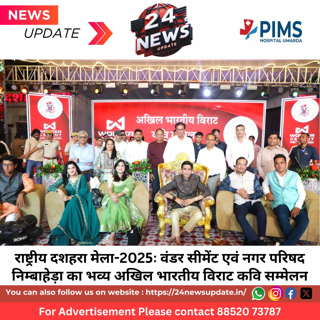 24 News Update निम्बाहेड़ा (कविता पारख)। निम्बाहेड़ा। राष्ट्रीय दशहरा मेला-2025 के अंतर्गत गुरुवार रात्रि को अखिल भारतीय विराट कवि सम्मेलन का भव्य आयोजन किया गया। इस कवि सम्मेलन में देशभर के नामचीन कवियों ने अपनी रचनाओं के माध्यम से श्रोताओं को साहित्यिक रस में सराबोर किया। नगर परिषद परिसर में आयोजित इस साहित्यिक संध्या में हजारों श्रोताओं ने देर रात तक काव्यपाठ का आनंद उठाया और लगातार तालियों की गड़गड़ाहट से कवियों का उत्साहवर्धन किया।