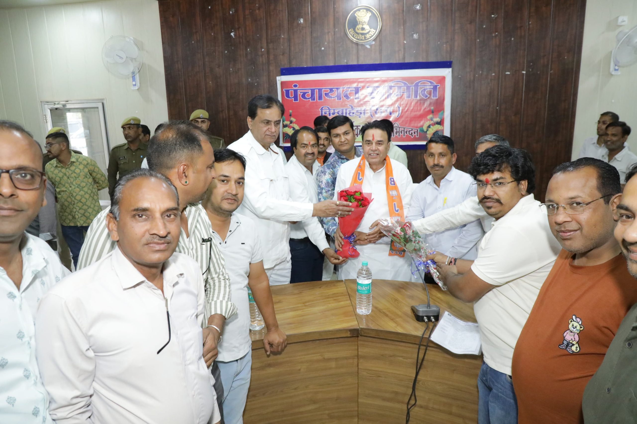 24 न्यूज अपडेट, निम्बाहेड़ा। राजस्थान सरकार के कानून, न्याय एवं संसदीय कार्य मंत्री जोगाराम पटेल रविवार को निम्बाहेड़ा-छोटीसादड़ी विधानसभा के दौरे पर रहे। मंत्री जोगाराम पटेल के साथ सांचौर विधायक जीवाराम चौधरी के भी निम्बाहेड़ा पहुंचने पर पंचायत समिति परिसर स्थित सभागार में पूर्व स्वायत्त शासन मंत्री एवं विधायक श्रीचंद कृपलानी के नेतृत्व में भारतीय जनता पार्टी के पदाधिकारियों एवं कार्यकर्ताओं ने स्वागत किया। आरम्भ में मंत्री जोगाराम पटेल एवं सांचौर से विधायक जीवाराम चौधरी ने पं. दीनदयाल उपाध्याय की प्रतिमा पर माल्यार्पण कर नमन किया।