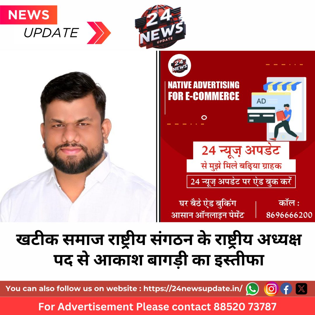 24 News Update. उदयपुर। खटीक समाज राष्ट्रीय संगठन के अध्यक्ष पद से आकाश बागड़ी ने सोमवार को इस्तीफा दे दिया। उन्होंने इस्तीफा संस्थापक अध्यक्ष को सौंप दिया है। बागड़ी ने बताया कि संगठन की रीति और नीति से मेल नहीं खाने के कारण उन्होंने यह कदम उठाया है। उन्होंने बताया कि संगठन की ओर से उन्होंने हाल ही में सामूहिक विवाह भी करवाया और समाज के उत्थान के लिए कई तरह की गतिविधिया भी संचालित की। समाज के निर्धन लोगों की मदद के लिए चिकित्सा शिविर आयोजित किया एवं एक निशुल्क एंबुलेंस चालू की। निशुल्क सामूहिक विवाह कि समाज के लोगों द्वारा काफी सराहना की गई, खटीक समाज के उत्थान के लिए वे लगातार प्रयासरत थे, लेकिन कुछ लोगों द्वारा संगठन की रीति-नीति के विरुद्ध चलने कारण उन्होंने राष्ट्रीय अध्यक्ष पद से इस्तीफा दे दिया है। अब उनका खटीक समाज राष्ट्रीय संगठन से कोई लेना देना नहीं है। बागड़ी बोले-वाट्सएप ग्रुप में कमेंट से शुरू हुई बात24 न्यूज अपडेट से बातचीत में बागड़ी ने कहा कि मैंने समाज में बहुत अच्छे काम किए। समाज का परसेप्शन भी बदला। पिछले दिनों संगठन एकलिंगनाथ सेवा संगठन के तहत भजन संध्या की थी। इसमें कुछ फोटो व वीडियो समाज के ग्रुप में डाले व इसका नतीजा यह आया कि संस्थापक ने कमेंट लिखा कि खटीक समाज के ही फोटो वीडियो ग्रुप में डालें। इसके बाद कुछ बातें हुईं जिसके चलते मैंने अपने पद से इस्तीफा दे दिया। दो दिन बाद में प्रेसवार्ता करके पूरा खुलासा करूंगा। समाज सेवा का मेरा क्रम जारी रहेगा व हमेशा समाज के प्रति समर्पित रह कर कार्य करूंगा। हो सकता है अलग संगठन बना कर काम करूं। Share this: Share on X (Opens in new window) X Share on Facebook (Opens in new window) Facebook More Email a link to a friend (Opens in new window) Email Share on WhatsApp (Opens in new window) WhatsApp Like this:Like Loading... Related Discover more from 24 News Update Subscribe to get the latest posts sent to your email. Type your email… Subscribe Post navigation पूजा के दौरान पूर्व केंद्रीय मंत्री डॉ. गिरिजा व्यास की साड़ी में आग, मामूली झुलसीं, अहमदाबाद रेफर राजस्थान निवेश उत्सव: 350 बिलियन डॉलर अर्थव्यवस्था का लक्ष्य