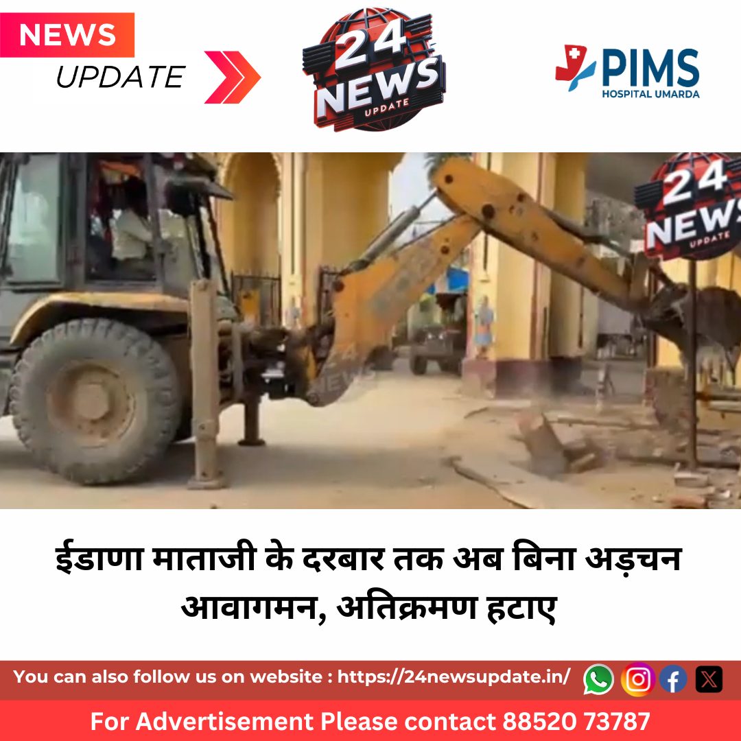 24 News Update सलूंबर। सलूंबर जिला के गींगला क्षेत्र में स्थित प्रसिद्ध शक्तिपीठ ईडाणा माताजी मंदिर के मुख्य मार्ग से अवैध अतिक्रमण हटाए जाने के बाद आखिरकार श्रद्धा और व्यवस्था—दोनों ने राहत की सांस ली है। लंबे समय से मंदिर के प्रवेश द्वार और हनुमान मंदिर के सामने पसरी अस्थायी दुकानों और ढांचों ने जिस रास्ते को संकरा कर दिया था, वह अब पूरी तरह खुल चुका है।