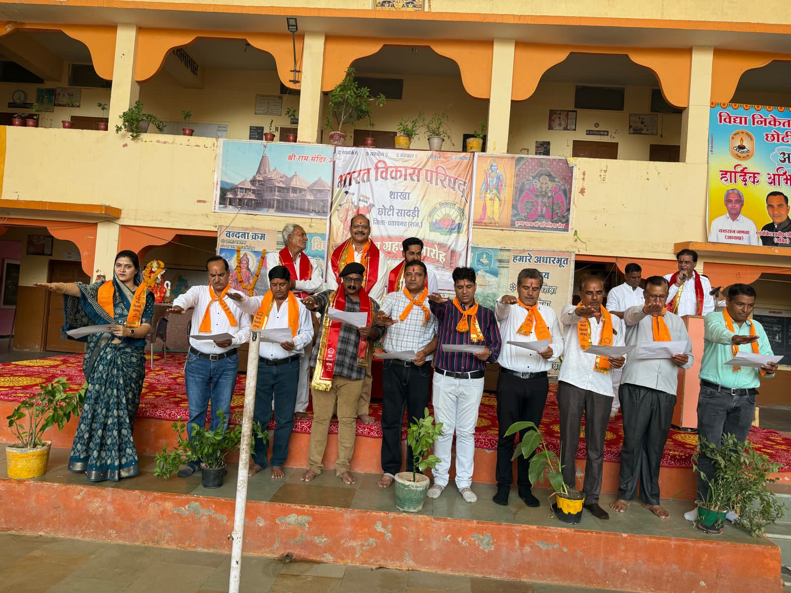 24 News Update निम्बाहेड़ा। छोटीसादड़ी नगर के विद्या निकेतन विद्यालय में भारत विकास परिषद छोटीसादड़ी की नवीन कार्यकारिणी का दायित्व ग्रहण समारोह आयोजित हुआ। कार्यक्रम में विधायक श्रीचन्द कृपलानी मुख्य अतिथि रहे। कार्यक्रम की अध्यक्षता जिला समन्वयक प्रकाश कुमावत ने की, वहीं विशिष्ट अतिथि के रूप में भाजपा जिलाध्यक्ष महावीर सिंह कृष्णावत, चित्तौड़गढ़ जिला प्रमुख गब्बर सिंह अहीर, छोटीसादड़ी नगर अध्यक्ष प्रदीप उपाध्याय, पूर्व पालिका अध्यक्ष श्यामसुंदर अग्रवाल उपस्थित रहे।