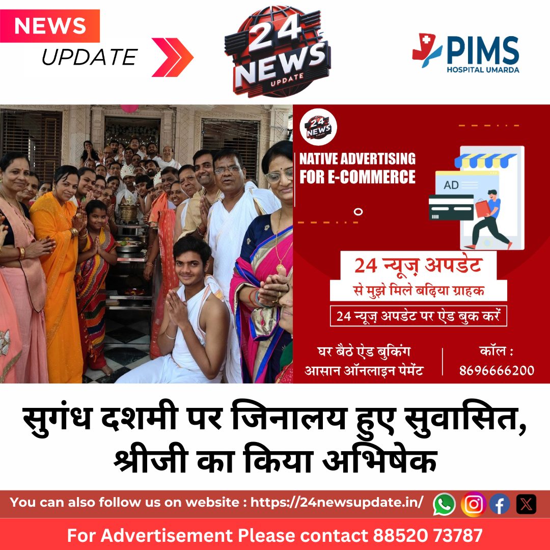 जैन समाज के प्रतिष्ठाचार्य पंडित विनोद उर्फ विरल पगारिया ने बताया कि इस अवसर पर मंगलवार प्रातः रोशन , विकास कोठारी द्वारा साथिया भरा गया। साथ ही चन्द्रप्रभु भगवान की प्रतिमा को पाण्डूक शिला पर विराजित कर पंचामृत अभिषेक किया गया स्वर्ण कलश से अभय जैन तथा परेश गलालिया द्वारा अभिषेक किया गया। विश्व शांति कामनार्थ श्रद्धालुओ द्वारा शांतिधारा की गयी। नवदेवता पूजा , सोलह कारण पूजा , दस लक्षण पूजा के बाद उत्तम संयम धर्म के विधान मंडप पर अष्ट द्रव्य श्रीफल युक्त अर्घ चढाये गये। दोपहर मे समाज जनो द्वारा नगर के सभी जिनालयो मे धूप चढायी गयी सुगंध दसमी अवसर पर सभी जिनालय के गर्म गृह मे पुष्पो से आकर्षक सजावट की गयी। सांयकालीन आरती का लाभ राजेन्द्र पंचोरी ने लिया। इस अवसर पर कपिल पंचोरी,राजेन्द्र दोसी/विजय,निखिल नोगमिया,ललित कोठारी,बिहारी लाल,राजेश,अजित,अक्षत,वैभव पालविया पोपट पंचोरी,नागेश गोवाडिया,अशोक कोठारी,महावीर पगारिया समेत अनेक श्रद्धालु उपस्थित थे।