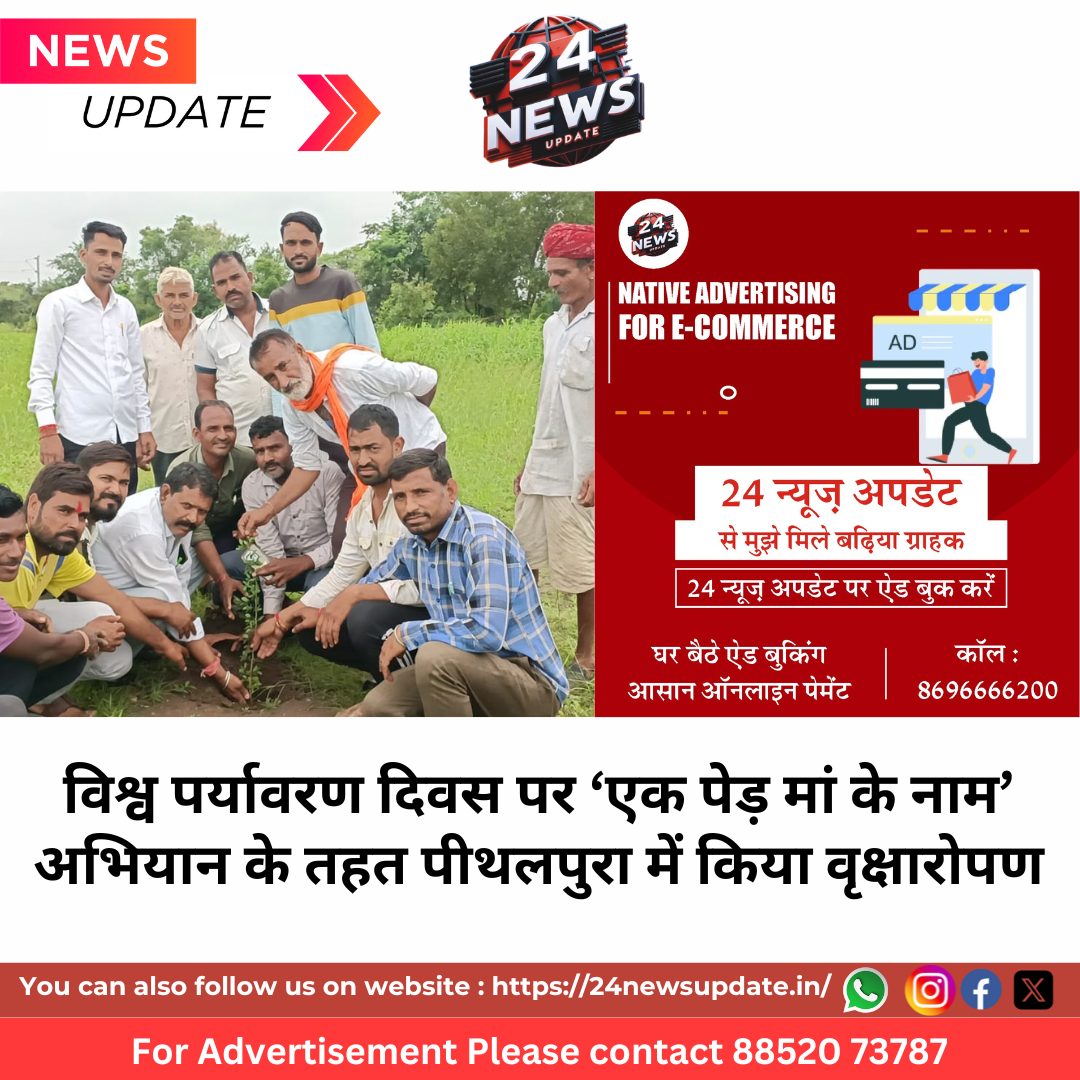 24 News Update कानोड़। विश्व पर्यावरण दिवस के अवसर पर ‘एक पेड़ मां के नाम’ अभियान के अंतर्गत ग्राम पंचायत पीथलपुरा के राजकीय उच्च प्राथमिक विद्यालय, नया राजपुरा के खेल मैदान परिसर में भव्य वृक्षारोपण कार्यक्रम आयोजित किया गया। इस अवसर पर पर्यावरण संरक्षण की दिशा में सामूहिक जागरूकता और भागीदारी की मिसाल पेश की गई।