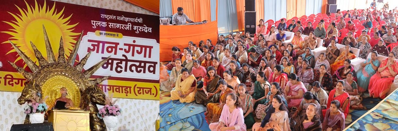 नगर के ऋषभ वाटिका में सकल दिगंबर जैन समाज सागवाड़ा द्वारा आयोजित ज्ञान गंगा महोत्सव के पांचवें दिन शनिवार को उपस्थित श्रद्धालुओं को संबोधित करते हुए आचार्य पुलक सागर महाराज ने कहा कि पलकों को झुकाकर जियो तो दुनिया तुम्हें पलकों पर बिठा देगी। ज्यादा अकड़कर मत जियो, झुककर जीना प्रारंभ करो। जो झुकता है वही जीवन में ऊपर उठता है, ज्यादा अकड़ोगे तो जड़ से काटे जाओगे। हाथों की दस उंगलियों का उदाहरण देते हुए कहा कि हथेली की अंतिम उंगली सबसे छोटी होती है, लेकिन जब परमात्मा के सामने हाथ जोड़कर दर्शन करते हैं तो वही उंगली भगवान के सामने होती है। जिसका नेचर अच्छा है उसका फ्यूचर अच्छा होता है। आदमी को बदलने के लिए व्यवहार बदलने की जरूरत है, बड़ा बनने के लिए सर्वस्व समर्पित करना पड़ता है। परिवार में सभी सदस्य अहंकार का त्याग करेंगे तो परिवार में शांति कायम होगी।