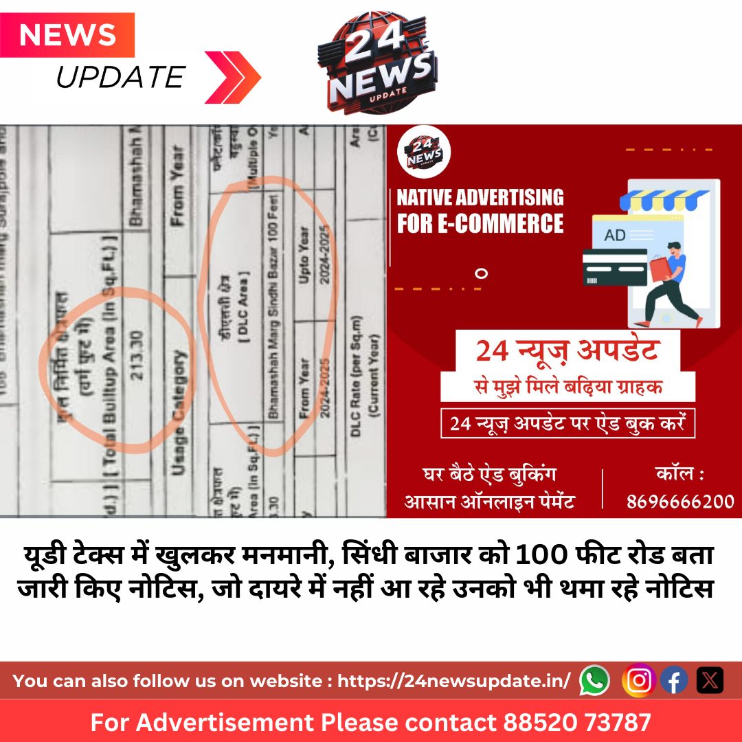 24 न्यूज अपडेट उदयपुर। एकमुश्त टेक्स जाम है तो भी नोटिस आ रहे हैं, जो दायरे में नहीं आ रहे हैं उनको जबरन दायरे में लाकर नोटिस भेजे जा रहे हैं। सिंधी बाजार की रोड को 100 फीट की रोड बता कर जबरन नोटिस दिए जा रहे हैं। कहीं नोटिस देकर परेशान करने का कोई खेल तो नहीं चल रहा है इन दिनों नगर निगम में। 24 न्यूज अपडेट की टीम ने जब पड़ताल की तो कई चौंकाने वाले मामले सामने आए जिनसे यह साबित हो रहा है कि अफसरों ने आंख मूंदकर जनता को ठेके के लोगों के हवाले कर दिया है। यूडी टेक्स का ठेका लेने वालों को जनता से नहीं, अपनी आमदनी से मतलब है। अफसरों को मार्च तक टार्गेट पूरा करने का लक्ष्य मिला हुआ है, उन पर डंडा हो रहा है तो वे जनता पर डंडा कर रहे हैं। कार्रवाई सिर्फ और सिर्फ जनता पर हो रही है। लापरवाही बरतने वाले मजे कर रहे हैं। जिन्होंने 17 से 18 सालों तक टेक्स नहीं वसूला, उन पर कार्रवाई तो दूर, कार्रवाई की कोई चर्चा तक नहीं। जो लोग गलत सर्वे कर रहे हैं वे बेखौफ हैं कि उन पर कभी कोई कार्रवाई होने वाली ही नहीं है। ज्यादा से ज्यादा गलती हो जाने पर कानून के डर से कागजों में दुरूस्त कर देने के दस्तूर से ज्यादा कुछ होने वाला नहीं। उपर से नेताओं का संरक्षण होने से ज्यादा चर्चा या विरोध की कोई गुंजाइश नहीं बच पाती है।
