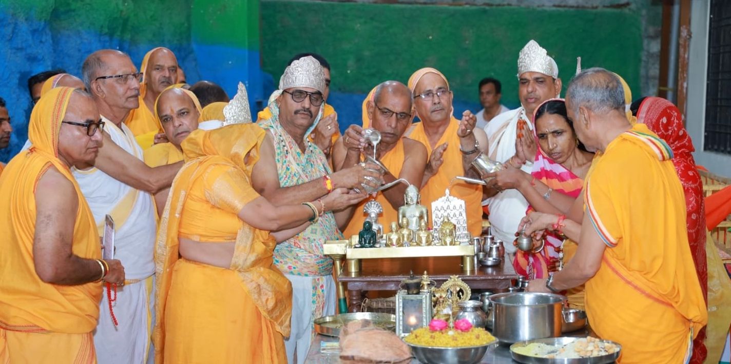 – मूलनायक भगवान पर शांतिधारा एवं पंचामृत अभिषेक किया