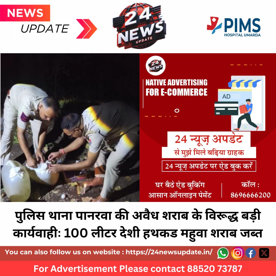 24 News Update उदयपुर. जिला पुलिस अधीक्षक, उदयपुर श्री योगेश गोयल द्वारा अवैध मादक पदार्थों के विरूद्ध चलाये जा रहे अभियान के तहत श्री गोपाल स्वरूप मेवाडा अतिरिक्त पुलिस अधीक्षक, मुख्यालय एवं श्री राजेन्द्रसिंह वृताधिकारी वृत कोटडा के सुपरविजन में श्री भागीरथ कुमार बुन्देला थानाधिकारी, पानरवा के नेतृत्व में टीम अवैध शराब के विरूद्ध कार्यवाही हेतु मुखबीर की सुचना पर प्रभुलाल पिता रामा निवासी छालीबोकडा थाना पानरवा जिला उदयपुर के मकान के पीछे पहुंचे। जहां पर प्रभुलाल शराब निकालने की भट्टी से देशी हथकड महुवा शराब निकाल रहा था जो पुलिस टीम को देखकर अंधेरे का फायदा उठाकर भाग गया। मौके पर देशी हथकड शराब के 05 केन 20-20 लीटर के कुल 100 लीटर देशी महुवा हथकड शराब मिली जिसको जब्त कर प्रकरण संख्या 115/2025 धारा 16/54 राज. आबकारी अधिनियम 1950 में दर्ज किया गया। प्रकरण में अग्रिम अनुसंधान जारी है।
