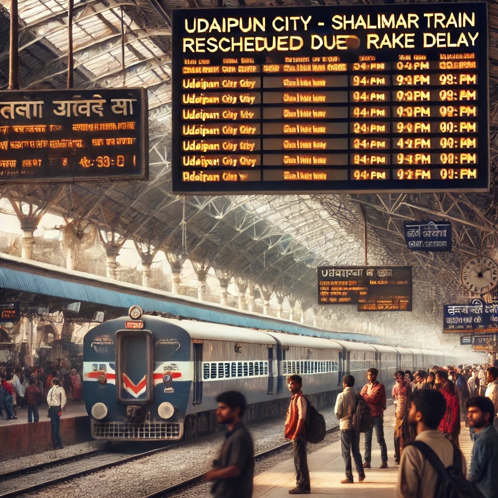 24 न्यूज अपडेट उदयपुर। उत्तर पश्चिम रेलवे के मुख्य जनसम्पर्क अधिकारी कैप्टन शशि किरण के अनुसार, लिंक रेक की देरी के कारण उत्तर पश्चिम रेलवे पर संचालित निम्न रेलसेवा प्रभावित रहेगीः रीशड्यूल रेलसेवा (प्रारम्भिक स्टेशन से) – गाड़ी संख्या 20971, उदयपुर सिटी – शालीमार रेलसेवा, जो दिनांक 22.03.25 को उदयपुर सिटी स्टेशन से अपने निर्धारित समय 01ः05 बजे के बजाय 01 घंटा की देरी से 02ः05 बजे प्रस्थान करेगी।