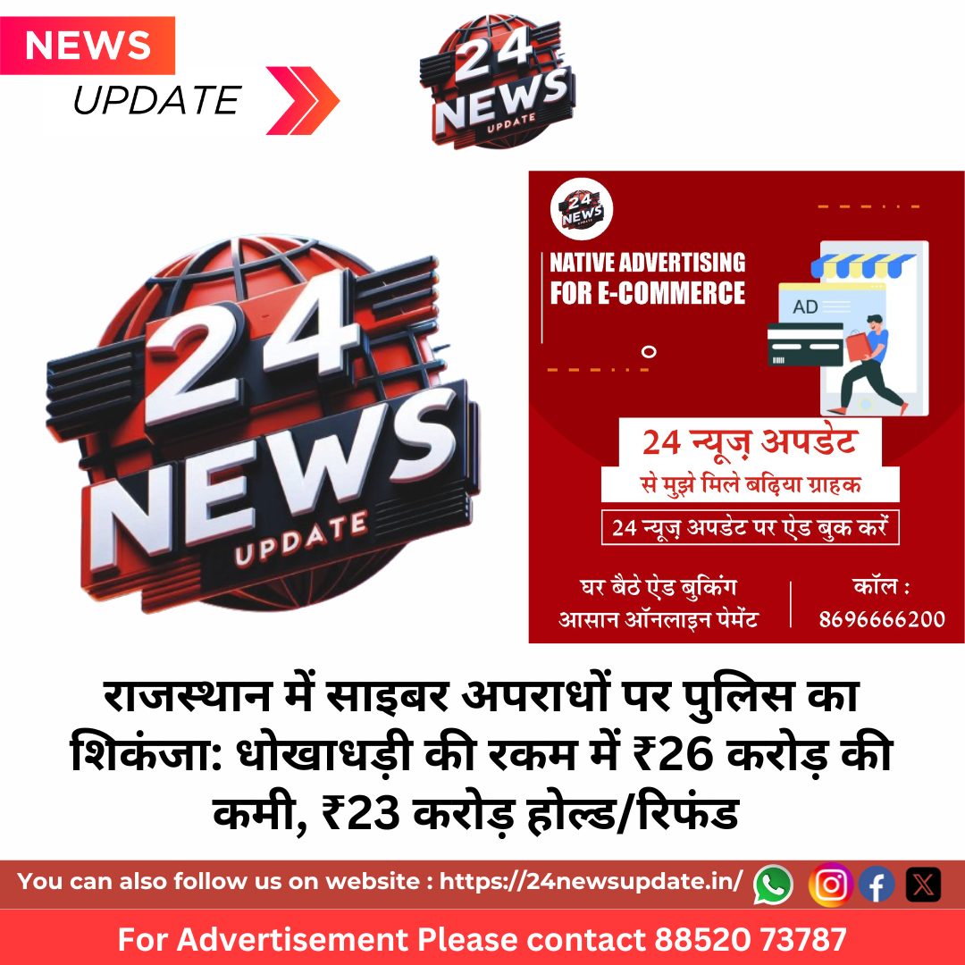 24 News Update जयपुर, 18 जुलाई। राजस्थान पुलिस की साइबर क्राइम शाखा द्वारा चलाए जा रहे विशेष अभियानों और व्यापक जन-जागरूकता कार्यक्रमों के कारण राज्य में साइबर अपराधों पर प्रभावी नियंत्रण देखने को मिल रहा है। महानिदेशक पुलिस साइबर क्राइम राजस्थान जयपुर के कार्यालय के अनुसार साइबर धोखाधड़ी से संबंधित धन राशि में उल्लेखनीय कमी आई है, जबकि होल्ड/रिफंड की राशि में बढ़ोतरी दर्ज की गई है।