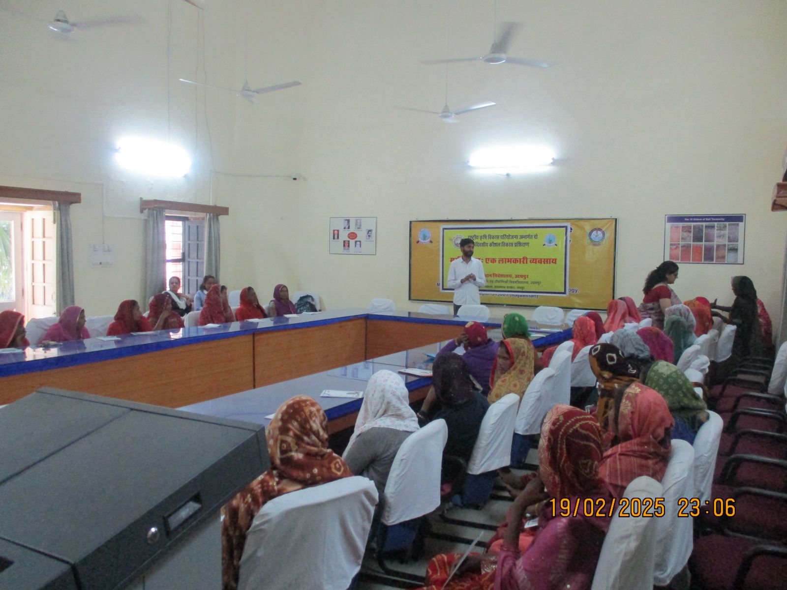 24 न्यूज़ अपडेट उदयपुर. राष्ट्रीय कृषि विकास योजना एवं अखिल भारतीय कृषिरत महिला अनुसंधान परियोजना के संयुक्त तत्वाधान में झाड़ोल व फलासिया के स्वयं सहायता समूहों की 30 महिलाओं एवं गुडली के 40 कृषक परिवारों के लिए मुर्गीपालन व्यवसाय का दो दिवसीय प्रशिक्षण कार्यक्रम राजस्थान कृषि महाविद्यालय में आयोजित किया गया। राष्ट्रीय कृषि विकास योजनांतर्गत 10 महिला समूहों के गठन के साथ ही उन्हें कृषि संबंधित विभिन्न व्यवसायों में प्रशिक्षित करने का लक्ष्य है। इस हेतु झाड़ोल व फलासिया में 10 महिला स्वयं सहायता समूहों का गठन किया गया है।परियोजना प्रभारी डॉ विशाखा बंसल ने बताया कि इन दो दिवस में महिलाओं को मुर्गीपालन व्यवसाय की बारीकियां सिखाई गई। जैसे कि मुर्गियों को दाना कब और कैसे देना, मुर्गियों का बाड़ा तैयार करना, टीकाकरण, अंडे एकत्रित करना आदि।प्रशिक्षण में डॉ गजानंद, डॉ सुभाष, डॉ डी पी एस डूडी, देवीलाल मेघवाल, डॉ केसराम, डॉ मनोज आदि ने मुर्गीपालन की विस्तृत जानकारी दी। प्रशिक्षण में स्वयं सहायता समूहों को आय संवर्धन से जोड़कर स्वावलंबी बनाने पर विशेष जोर दिया गया। प्रशिक्षण कार्यक्रम में श्री कार्तिक सालवी, डॉ कुसुम शर्मा व अनुष्का तिवारी ने महिलाओं को पशुपालन ईकाई का भ्रमण करवाया Share this: Share on X (Opens in new window) X Share on Facebook (Opens in new window) Facebook More Email a link to a friend (Opens in new window) Email Share on WhatsApp (Opens in new window) WhatsApp Like this:Like Loading... Related Discover more from 24 News Update Subscribe to get the latest posts sent to your email. Type your email… Subscribe Post navigation महिला समाज और इनरव्हील ने मनाया फागुन उत्सव, काम वाली बाईजी की बेटी को दिए शादी के तोहफे अवैध मादक पदार्थों के विरूद्ध बड़ी कार्यवाही, 30.66 ग्राम एम.डी.एम.ए. जब्त, एक आरोपी गिरफ्तार