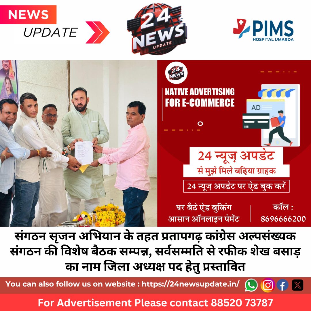 24 News Udpate प्रतापगढ़। कांग्रेस पार्टी द्वारा प्रदेशभर में चलाए जा रहे “संगठन सृजन अभियान” के अंतर्गत प्रतापगढ़ जिले में कांग्रेस अल्पसंख्यक संगठन की विशेष बैठक पीर बाग में आयोजित की गई। इस बैठक की जानकारी यूथ कांग्रेस प्रदेश सचिव अमन गौरी ने एक प्रेस विज्ञप्ति जारी कर दी।