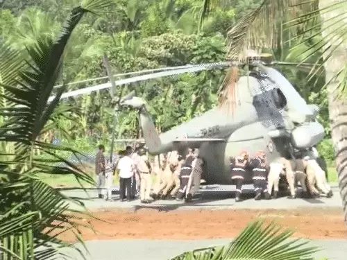 पहले लैंडिंग की योजना पंबा के पास निलक्कल में थी, लेकिन खराब मौसम के कारण इसे प्रामदम में स्थानांतरित किया गया।