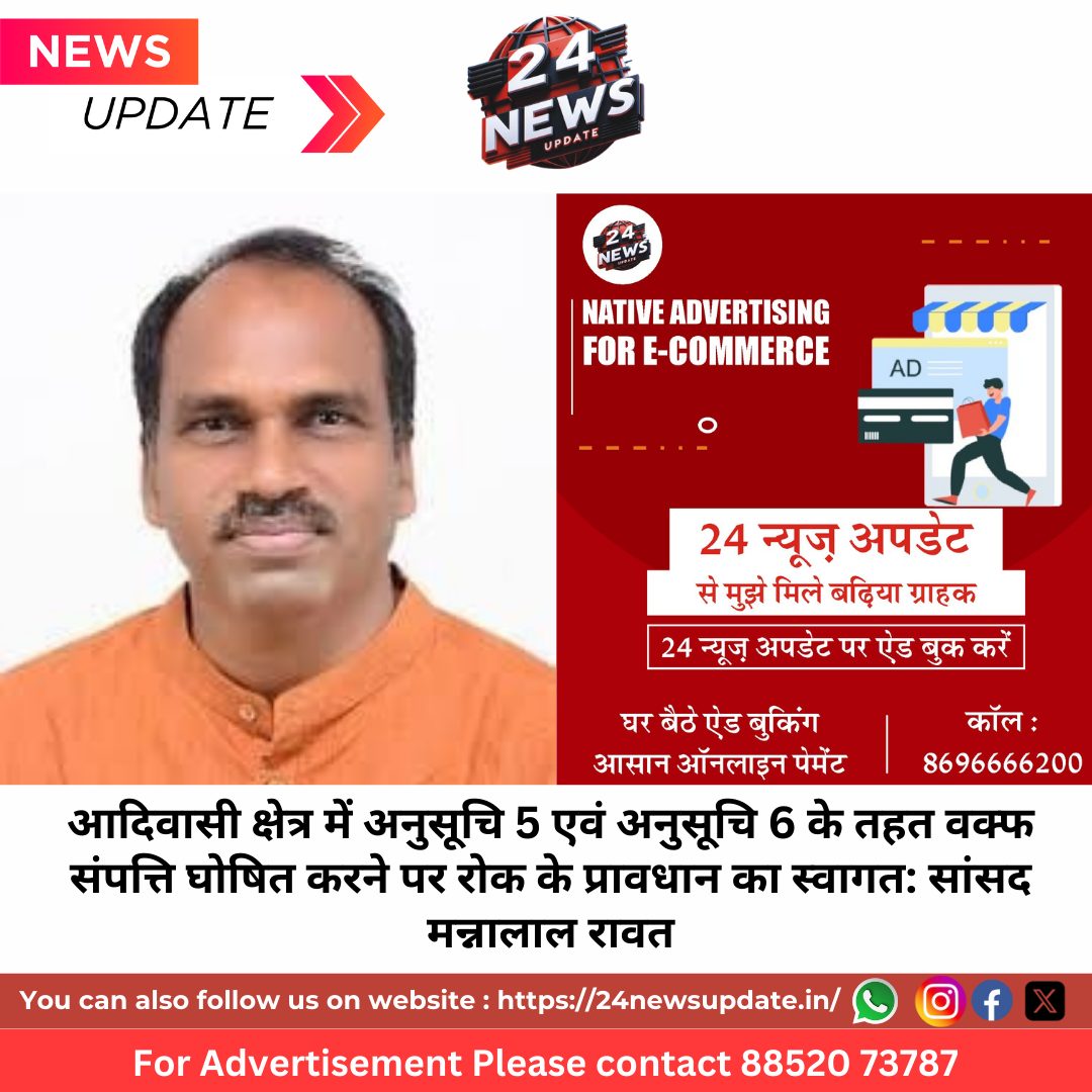 उदयपुर। सांसद मन्नालाल रावत ने वक्फ (संशोधन) विधेयक में आदिवासी क्षेत्र में अनुसूचि 5 एवं अनुसूचि 6 के तहत वक्फ संपत्ति घोषित करने पर रोक लगाने का प्रावधान शामिल करने पर खुशी जताई है और कहा कि इससे आदिवासी समुदाय की मूल संस्कृति और सवैधानिक अधिकारों का भी संरक्षण हो सकेगा।