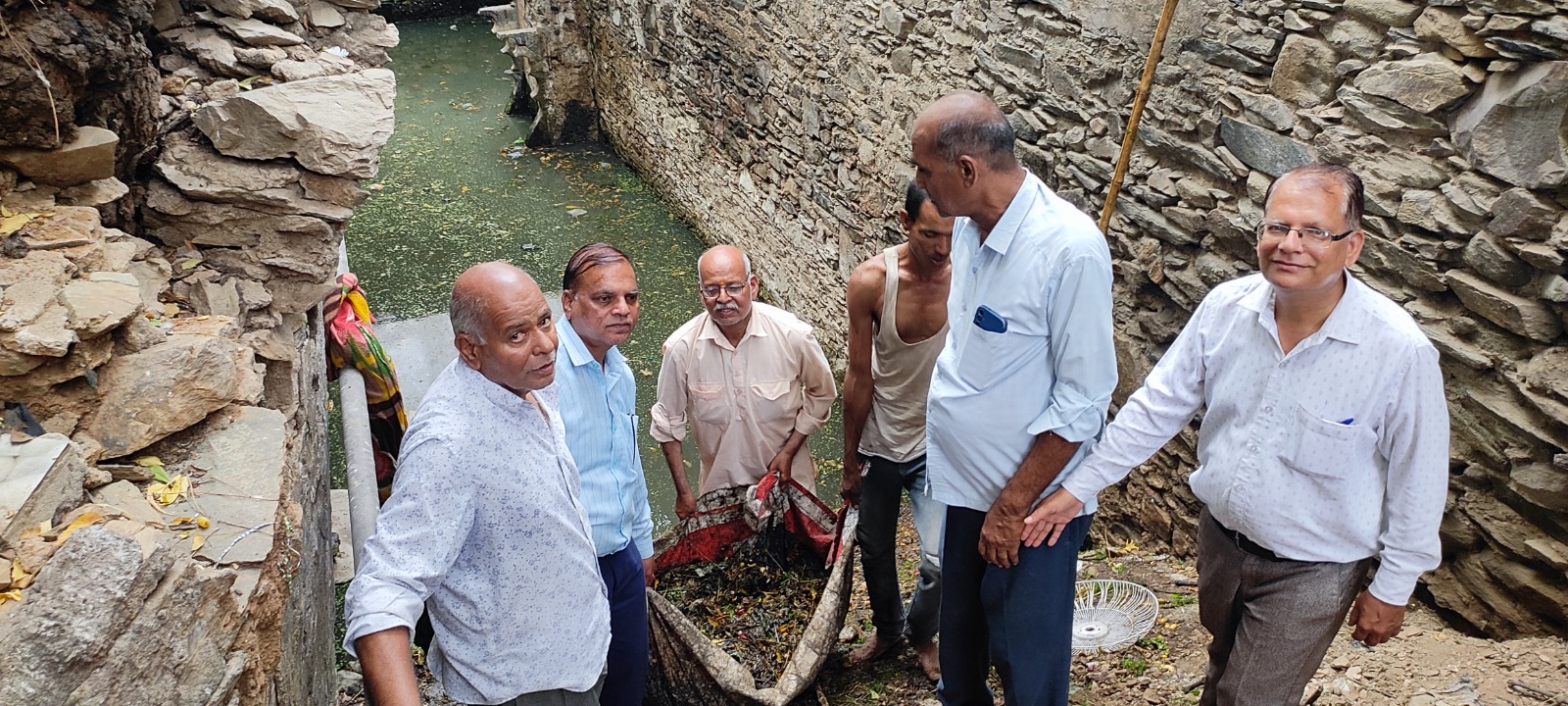 24 न्यूज अपडेट, उदयपुर। तांगा स्टैंड हाथीपोल उदयपुर स्थित श्री पूर्बिया कलाल समाज के श्री राधा कृष्ण मंदिर परिसर में स्थित प्राचीन बावड़ी की सफाई की गई । नरेश पूर्बिया ने बताया कि इस बावड़ी का प्रति वर्ष की भांति इस वर्ष भी पूर्बिया समाज के समाजसेवियों के सहयोग से सफाई अभियान चला कर बावड़ी से पेड़ के पत्ते व अन्य सामग्री के कचरे को निकाला गया । करीब एक ट्रेक्टर कचारा निकाला गया। सभी समाज बंधुओ ने बढ़चढ़ कर हिस्सा लिया। सफाई के बाद बावड़ी की सुंदरता निखर आई । पानी कांच की तरह चमकता नज़र आया। पूर्बिया समाज उदयपुर ईकाई अध्यक्ष दिनेश पूर्बिया ने बताया की यह बावड़ी अतिप्राचीन हैं। जब स्वरूप सागर का निर्माण हुआ।तब कलालो का मंदिर स्वरुप सागर में डूब गया, तब यह राधा कृष्ण का मंदिर व बावड़ी उदयपुर महाराणा की ओर से पूर्बिया कलाल समाज दी गई थी। इस बावड़ी का पानी हाथीपोल स्थित समाज के लोग करते थे। आज सफाई अभियान में दिनेश पूर्बिया अध्यक्ष पूर्बिया समाज उदयपुर, नरेश पूर्बिया अध्यक्ष पूर्बिया समाज ओंगणा, पन्ना लाल पूर्बिया, यशवंत पूर्बिया,मदन चौधरी, सुर्य प्रकाश पूर्बिया,छगन लाल पूर्बिया, दिलीप पूर्बिया, आंनद पूर्बिया, नितेश चौधरी, रेवंत लाल पूर्बिया, ओमप्रकाश पूर्बिया, गिरिराज पूर्बिया, त्रिलोक पूर्बिया सहित कई समाज बंधु उपस्थित थे।