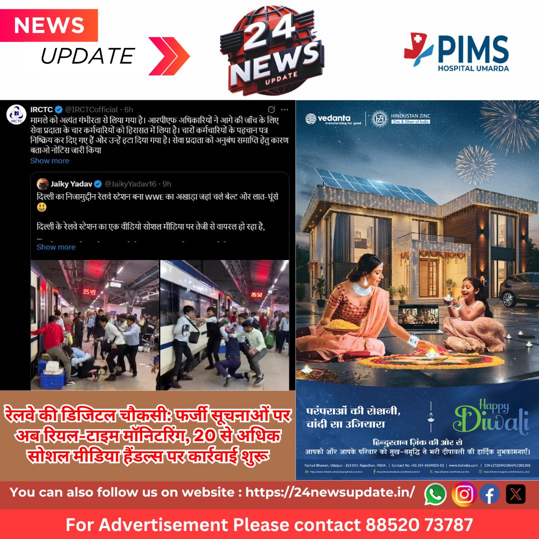 24 News update नई दिल्ली। त्योहारों के इस व्यस्त सीजन में जब देशभर में लाखों यात्री रेल यात्रा कर रहे हैं, रेलवे प्रशासन ने अपनी डिजिटल चौकसी प्रणाली को और मजबूत किया है। रेलवे अब न केवल ट्रेनों की समयबद्धता और सुरक्षा पर, बल्कि सूचना की प्रामाणिकता पर भी कड़ी निगरानी रख रहा है।