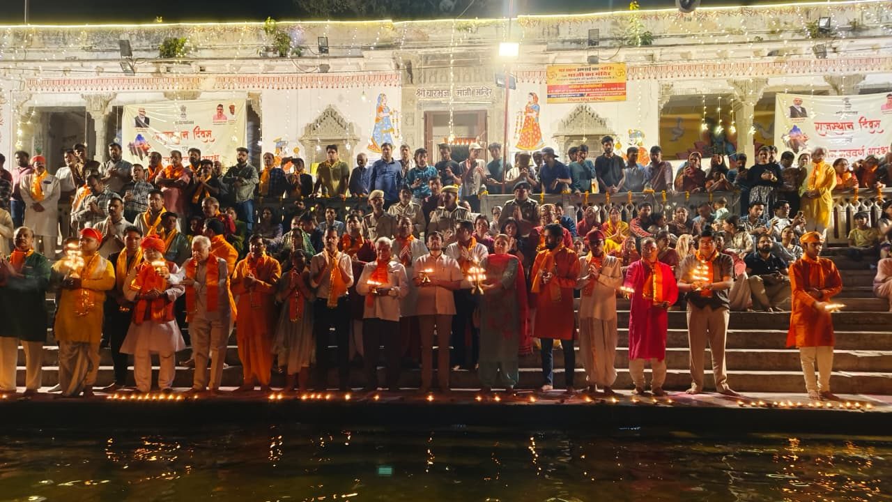 24 News Update उदयपुर। मुख्यमंत्री श्री भजनलाल शर्मा के निर्देशन में मनाए जा रहे राजस्थान दिवस सप्ताह के तहत चेत्र शुक्ल प्रतिपदा की पूर्व संध्या पर बुधवार शाम पिछोला झील के किनारे स्थित मांझी का घाट श्रद्धा, भक्ति और सांस्कृतिक वैभव का साक्षी बना। जिला प्रशासन, उदयपुर विकास प्राधिकरण और देवस्थान विभाग के संयुक्त तत्वावधान में आयोजित इस भव्य महाआरती कार्यक्रम ने उदयपुर की आध्यात्मिक पहचान को एक बार फिर जीवंत कर दिया।सांझ ढलते ही चांदपोल स्थित चारभुजाजी मंदिर के समीप मांझी घाट दीपों की रोशनी से जगमगाने लगा। सैकड़ों दीपों की कतारें, शंखनाद, मंत्रोच्चार और भक्ति संगीत के बीच आयोजित महाआरती ने पूरे वातावरण को दिव्यता से भर दिया। पिछोला झील की लहरों पर झिलमिलाते दीपों का प्रतिबिंब मानो आस्था और प्रकृति का अद्भुत संगम प्रस्तुत कर रहा था।कार्यक्रम में उदयपुर शहर विधायक ताराचंद जैन, ग्रामीण विधायक फूलसिंह मीणा, संभागीय आयुक्त सुश्री प्रज्ञा केवलरमानी, जिला कलक्टर नमित मेहता, एडीएम शहर जितेंद्र ओझा, यूडीए सचिव हेमेंद्र नागर सहित अनेक जनप्रतिनिधि और अधिकारी उपस्थित रहे। सभी ने विधि-विधान से पूजा-अर्चना कर प्रदेश की खुशहाली और समृद्धि की कामना की।महाआरती में शहरवासियों के साथ-साथ बड़ी संख्या में पर्यटकों ने भी भाग लिया। जनप्रतिनिधियों और अधिकारियों के साथ आमजन ने गंगा आरती में सहभागिता निभाते हुए जनभागीदारी का सशक्त संदेश दिया। कार्यक्रम स्थल पर उमड़ी भीड़ ने इस आयोजन को उत्सव का रूप दे दिया, जहां हर ओर भक्ति और उल्लास का माहौल नजर आया।इस आयोजन ने न केवल राजस्थान दिवस सप्ताह के उत्सव को नई ऊंचाइयां दीं, बल्कि उदयपुर की समृद्ध सांस्कृतिक विरासत, धार्मिक आस्था और सामाजिक एकता को भी मजबूती से प्रदर्शित किया। देवस्थान विभाग के अधिकारियों सहित समाजसेवी और विभिन्न संगठनों के प्रतिनिधियों की उपस्थिति ने कार्यक्रम को और गरिमा प्रदान की। Share this: Share on X (Opens in new window) X Share on Facebook (Opens in new window) Facebook More Email a link to a friend (Opens in new window) Email Share on WhatsApp (Opens in new window) WhatsApp Like this:Like Loading... Related Discover more from 24 News Update Subscribe to get the latest posts sent to your email. Type your email… Subscribe Post navigation सांसद गरासिया ने की लोकसभा अध्यक्ष से आदिवासी क्षेत्रों के विकास पर चर्चा पश्चिमी विक्षोभ का प्रहार: बारिश बनी आफत, करंट हादसे में दो की मौत
