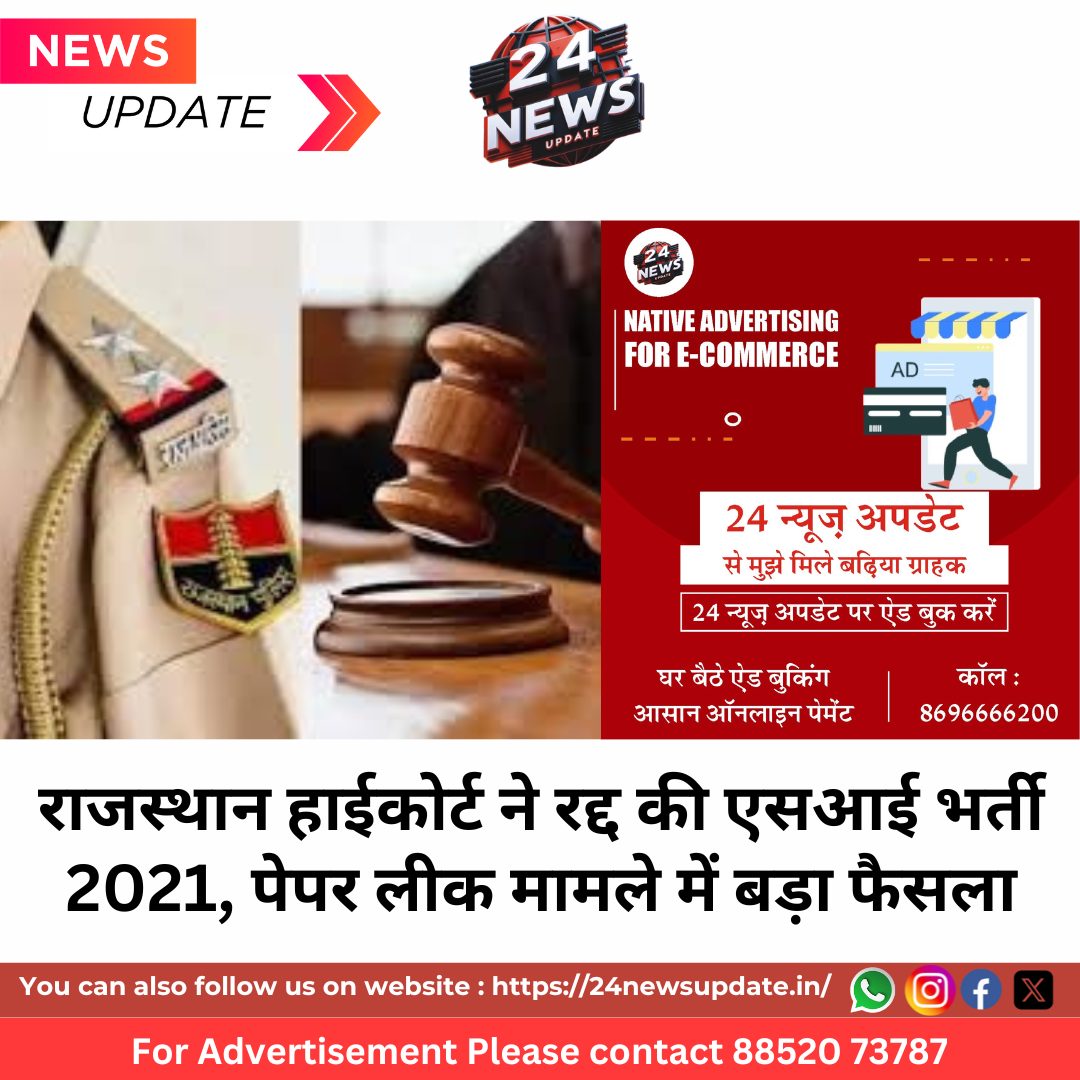24 News Update जयपुर। राजस्थान हाईकोर्ट ने बुधवार को बहुचर्चित एसआई भर्ती 2021 को रद्द कर दिया। इस भर्ती के तहत 859 पदों के लिए परीक्षा आयोजित हुई थी, लेकिन पेपर लीक मामले में कई ट्रेनी सब-इंस्पेक्टर पकड़े गए थे।