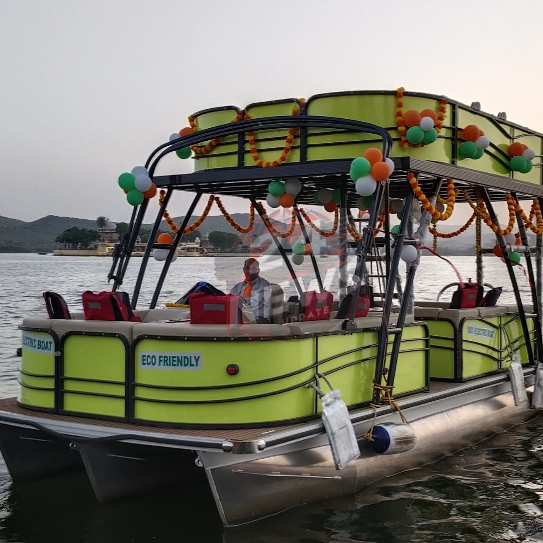 24 न्यूज अपडेट, उदयपुर। झीलों की नगरी उदयपुर के जल पर्यटन इतिहास में आज एक स्वर्णिम अध्याय जुड़ गया। शहर की प्रसिद्ध पिछोला झील में शनिवार को राजस्थान की पहली इलेक्ट्रिक डबल डेकर लग्जरी बोट का जलावतरण सांसद मन्नालाल रावत ने किया। जैसे ही यह आधुनिक और आकर्षक बोट झील की लहरों पर उतर कर इठलाने लगी, उसे देखने के लिए बड़ी संख्या में शहरवासी और पर्यटक उमड़ पड़े। इस बोट का संचालन शिवा एंड कोरल एसोसिएट्स की ओर से किया जा रहा है। इस अत्याधुनिक बोट को खासतौर पर पर्यावरण-संवेदनशील पर्यटन को बढ़ावा देने के उद्देश्य से तैयार किया गया है। बोट के पुर्जों को विदेश से आयात कर उदयपुर में इसे असेंबल किया गया है। इसका डिजाइन बेहद शानदार है, जिसमें नीचे और ऊपर दोनों डेक पर आरामदायक लेदर सोफों की बैठक व्यवस्था है। संचालक धर्मवीर सिंह भाटी ने बताया कि यह बोट ‘पैंटून’ तकनीक से बनी है, जो बेहद स्थिर और सुरक्षित होती है। आंधी-तूफान जैसी विपरीत परिस्थितियों में भी यह बोट संतुलन बनाए रखती है, जिससे यात्री बिना किसी डर के सुंदर झील दृश्य का आनंद ले सकते हैं। अभी दो बोटों का संचालन किया जा रहा है। एक 25 सीटर डबल डेकर और दूसरी 20 सीटर रूफटॉप बोट है। दोनों बोट आरटीओ में रजिस्टर्ड हैं और पर्यावरण की दृष्टि से पूरी तरह अनुकूल हैं। इन बोटों में पेट्रोल या डीजल का इस्तेमाल नहीं होता, इसलिए झील के पानी को कोई नुकसान नहीं होता। इनका संचालन इलेक्ट्रिक मोटर और बैटरियों से किया जाएगा, जिनमें हाई बैकअप की सुविधा है और बैटरी लेवल को 20 प्रतिशत से नीचे नहीं जाने दिया जाता। भाटी ने बताया कि ये बोटें न केवल पर्यावरण के अनुकूल हैं बल्कि बेहद शांत, स्मूद और आवाजरहित भी हैं। इससे झील की प्राकृतिक शांति और जीव-जंतुओं पर भी कोई प्रतिकूल प्रभाव नहीं पड़ेगा। उन्होंने कहा उदयपुर में अब नाइट टूरिज्म की शुरूआत होनी चाहिए ताकि पर्यटन जगत को नए आयाम दिए जा सकें। यहां की शानदार झीलें व रात को मनमोहक दृश्यों का दुनियाभर के पर्यटक भी आनंद लेना चाहते हैं। नाइट टूरिज्म शहर को नई प्रतिष्ठा भी दिलाएगा। Share this: Share on X (Opens in new window) X Share on Facebook (Opens in new window) Facebook More Email a link to a friend (Opens in new window) Email Share on WhatsApp (Opens in new window) WhatsApp Like this:Like Loading... Related Discover more from 24 News Update Subscribe to get the latest posts sent to your email. Type your email… Subscribe Post navigation के जी गट्टानी स्मृति वृहद चिकित्सा शिविर में 594 रोगी हुए लाभान्वित झाड़ोल में वृद्ध का अपहरण कर हत्या: तलवार की नोंक पर किया था अगवा, शव पेड़ से बंधा मिला, आरोपी गिरफ्तार, हत्या के पीछे पुरानी रंजिश का खुलासा