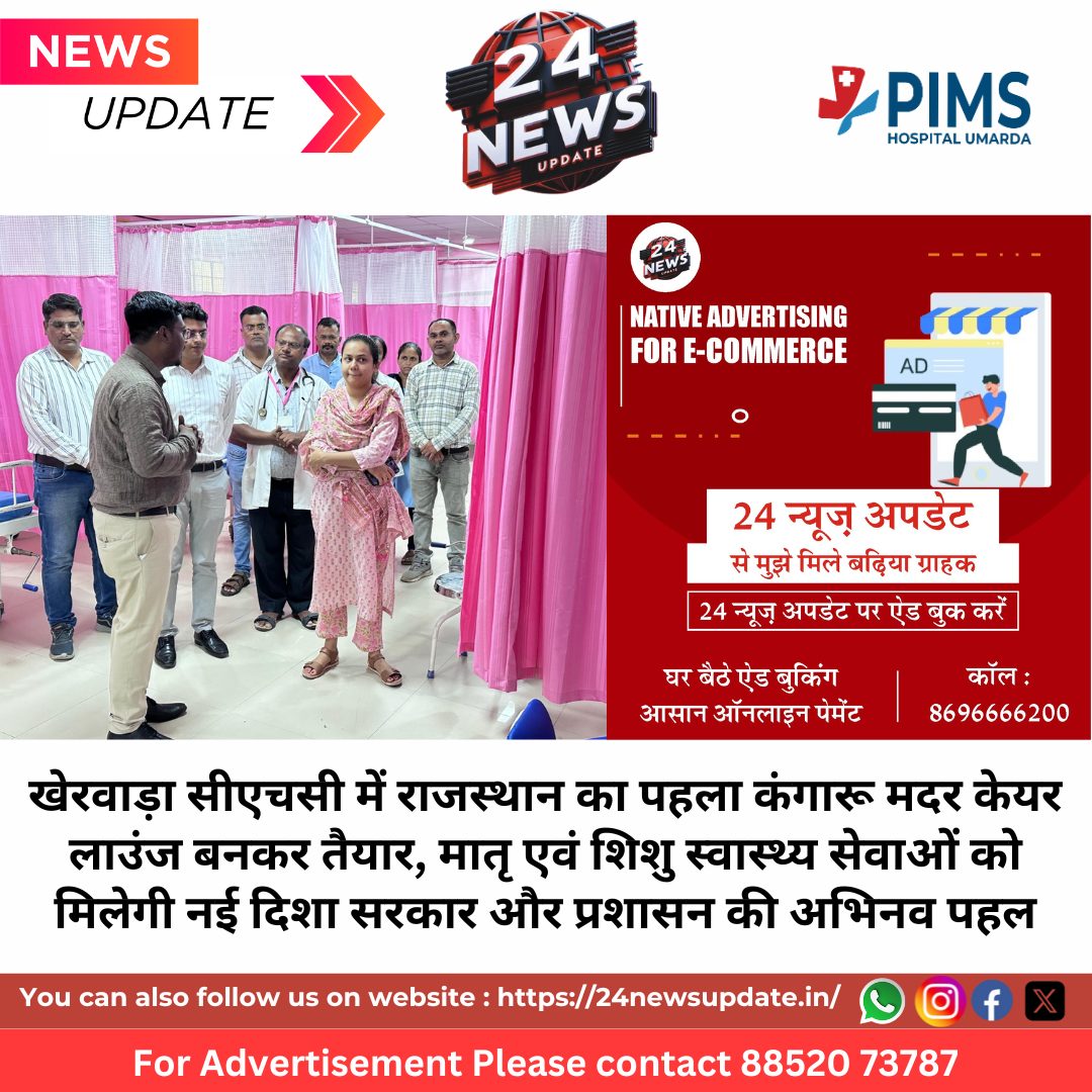 24 News Update उदयपुर। केंद्र एवं राज्य सरकारें स्वास्थ्य सेवाओं की मजबूती को लेकर संकल्प के साथ आगे बढ़ रही हैं। प्रधानमंत्री श्री नरेंद्र मोदी के नेतृत्व में नीति आयोग के माध्यम से वंचित क्षेत्रों के उत्थान के लिए आकांक्षी ब्लॉक कार्यक्रम चलाया जा रहा है। प्रदेश में मुख्यमंत्री श्री भजनलाल शर्मा के नेतृत्व में इस कार्यक्रम की सफल क्रियान्विति की जा रही है। इसी क्रम में उदयपुर जिले के खेरवाड़ा सामुदायिक स्वास्थ्य केंद्र (सीएचसी) में राजस्थान का पहला कंगारू मदर केयर (केएमसी) लाउंज स्थापित किया गया है। यह यूनिट मातृ एवं शिशु स्वास्थ्य सेवाओं को नई दिशा देने वाली एक अभिनव पहल है। जिला कलक्टर नमित मेहता के निर्देशन में एवं जिला परिषद की मुख्य कार्यकारी अधिकारी रिया डाबी द्वारा इस पहल को क्रियान्वित किया गया है। आकांक्षी ब्लॉक खेरवाड़ा में इस तरह की पहल ग्रामीण अंचल में माताओं और नवजात शिशुओं को एकीकृत एवं सम्मानजनक देखभाल उपलब्ध कराने की दिशा में ऐतिहासिक कदम है।