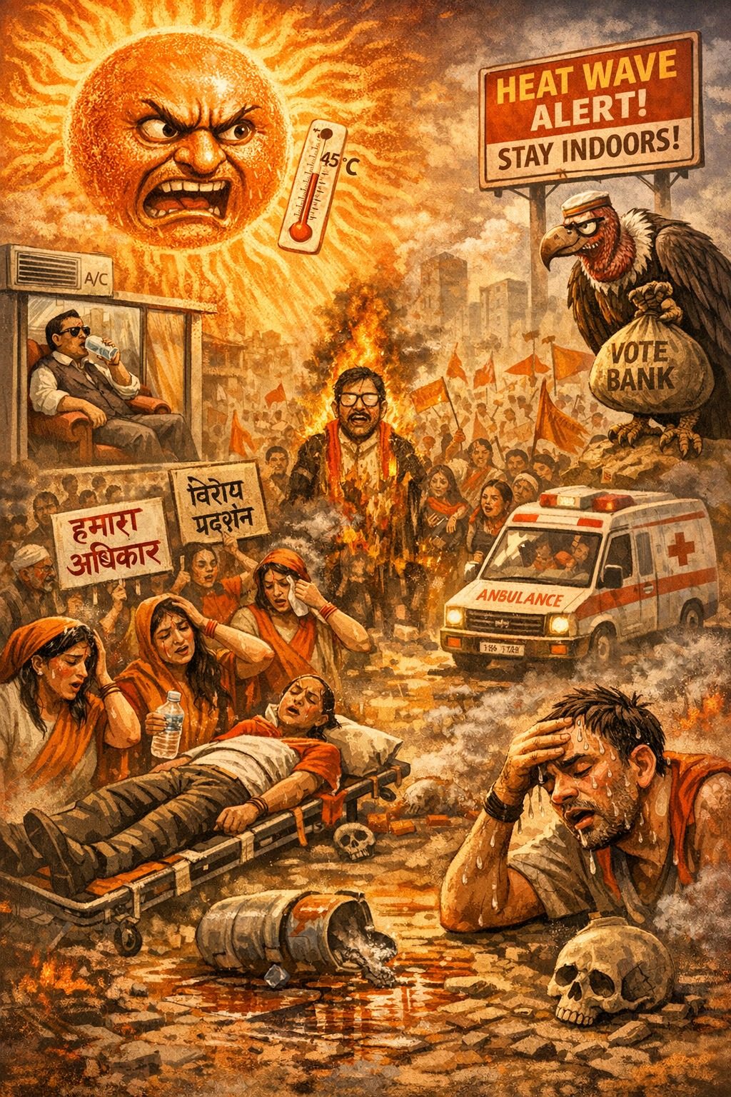 24 News Update Udaipur. मौसम विभाग कई दिनों से चेतावनी दे रहा है कि इन दिनों गर्मी पिघला देने वाली है। एक्सट्रीम हीट डोम कंडीशन बन रही है, जरूरी काम होने पर ही घर से बाहर निकलें। बाहर निकलना पड़े तो भी ज्यादा देर धूप में रहने से परहेज करें, बार-बार शीतल पेय पदार्थ का सेवन करें। पुरुषों के साथ महिलाओं को खास हिदायतें दी जा रही हैं कि वे अपना ज्यादा ध्यान रखें। बच्चों का ख्याल करें, उन्हें तेज धूप में बाहर नहीं जाने दें। बुजुर्गों को सबसे ज्यादा खतरा है। देशभर में जहां-जहां हीट डोम यानी कि तगड़ी गर्मी का असर है, वहां-वहां कई जिलों में स्कूलों का समय बदल गया है ताकि बच्चे तेज धूप से पहले ही घर वापस पहुंच जाएं। मगर इन सबके बीच हमारे नेता, हमारे खेवनहार अफसर लगता है किसी दूसरी ही दुनिया में जी रहे हैं। उन्हें कोई फर्क नहीं पड़ता कि तापमान किस जानलेवा सीमा रेखा को पार करता जा रहा है। उन्हें तो बस अपना उल्लू सीधा करने से मतलब दिखाई देता है। अपने हितों के लिए वे किसी भी हद तक जाने को तैयार हैं। साथी, समर्थकों, समाजजनों, शुभचिंतकों आदि को आग की भट्टी में झोंकने को तैयार हैं। एक तरफ मौसमी चेतावनियां दी जा रही हैं, तो दूसरी तरफ भरी दुपहरी में बड़ी-बड़ी रैलियां निकल रही हैं, प्रदर्शन किए जा रहे हैं, जिनमें बड़ी संख्या में महिलाओं की भी भागीदारी दिखाई दे रही है। इनकी परमिशन वही प्रशासन दे रहा है, जो लोगों को हीट वेव के बारे में सावधान करते हुए यह कह रहा है कि जरूरी काम होने पर ही घर से बाहर कदम रखें। अफसर एसी कमरों में बैठे हीट वेव पर चिंतन कर रहे हैं और कागजी आदेश जारी कर रहे हैं। दूसरी तरफ नेताओं व कुछ धार्मिक-सामाजिक संगठनों को लगता है कि इस दुनिया में उनके अलावा और किसी के पास न बुद्धि है, न सोचने-समझने की ताकत और संवेदनशीलता। जनता के एक वर्ग को उन्होंने लगभग अपना गुलाम बनाकर रख दिया है, जिसका उपयोग वे जब चाहें तब कर सकते हैं। रैलियां, विरोध प्रदर्शन, धरने, पुतला दहन आदि लोकतंत्र में विरोध के आजमाए हुए सर्वस्वीकार्य तरीके हैं। लेकिन इतनी गर्मी में ऐसे प्रदर्शन करना, ऐसी रैलियां और ऐसा शक्ति प्रदर्शन कौन-सी बुद्धिमानी है? बुद्धिमानी है या फिर महा मूर्खता की निशानी? हमारे आस-पास ही दिखाई दे रहा है कि गांव-देहातों से वाहनों में लोगों को भर-भर कर लाया जा रहा है और संख्या बल दिखाते हुए भरी दुपहरी में प्रदर्शन हो रहे हैं। लंबी पैदल रैलियां निकल रही हैं, जिनमें प्रदर्शन करने वाले लोग पसीना-पसीना हो रहे हैं। समझ नहीं आता कि इतनी गर्मी में यह सब करके नेता और अन्य संगठन आखिर हासिल क्या कर लेंगे? विरोध करने या अपने किसी मुद्दे को सड़क के माध्यम से कहने के तरीकों को अब बदलने का वक्त आ गया है। विरोध भी मौसम व समय के अनुकूल होना चाहि