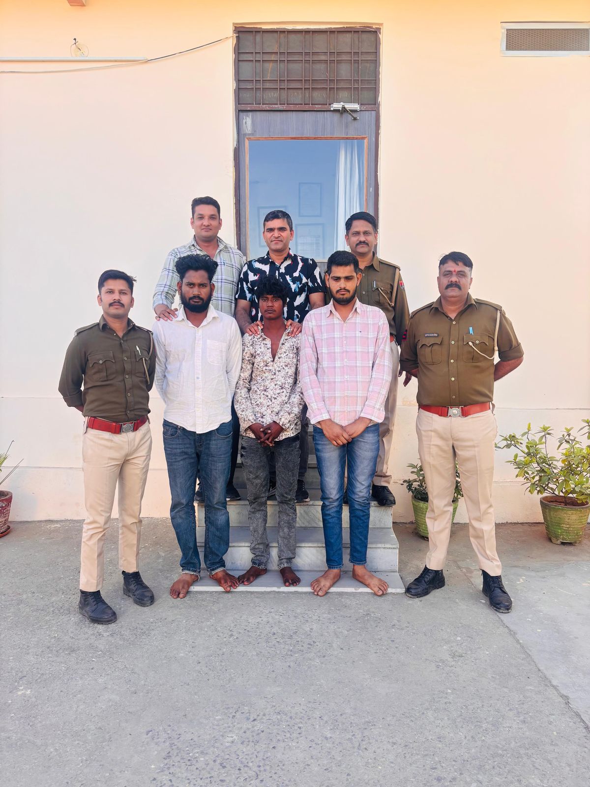 24 न्यूज अपडेट, उदयपुर। 15 फरवरी को भगवती प्रसाद पुत्र विरभद्र आमेटा निवासी कर्मशील मार्ग, ब्रम्हपोल थाना अम्बामाता हाल मकान सेक्टर थाना सविना ने रिपोर्ट पेश की कि 15 फरवरी को सांय 07.30 बजे के आस पास में तथा मेरा परिवार हमारे रिश्तेदारी में शादी होने से हम सभी घर पर ताला लगाकर प्रतापनगर गए थे। रात्री करीब ताला लगा हुआ था एवं बजे के ड्राईगं तो मैन गेट का जाली वाले गेट प्रवेश का ताला एवं अन्दर गेट पर लगे ईन्टर लॉक का ताला टूटा हुआ था। घर के अन्दर जाकर देखा तो अलमारी का ताला टूटा हुआ था और अन्य सामान बिखरा हुआ था। हमने अन्दर चेक किया तो अलमारी में रखे हुये मंगल सुत्र सोने कर, अंगुठी सोने की दो नंग, रखडी सोने की, दो चैन सोने की नथ एक सोने की, जिनका कुल वजन करीब 7 चांदी की एक जोडी पायल करीब ग्राम, बिछिया चांदी की वजन तोला और चालीस रूपये नकद नहीं मिले। अज्ञात व्यक्तियो द्वारा करीब मेरे घर का ताला तोड़कर अन्दर घुसकर यह घटना की है। बगैरा रिपोर्ट पर प्रकरण दर्ज अनुसंधान प्रारम्भ किया गया। जिला पुलिस अधीक्षक, उदयपुर श्री योगेश गोबल के निर्देशानुसार श्री उमेश ओझा अतिरिक्त पुलिस अधीक्षक, शहर व श्री छगन पुरोहित वृताधिकारी वृत नगर पूर्व के सुपरविजन में राव अजय सिंह थानाधिकारी, सविना के नेतृव में एक टीम का गठन किया गया। गठित टीम द्वारा आसूचना व तनकीकी सहयोग से प्रकरण में अभियुक्त दीषु पिता रामस्वरूप निवासी कनेछन कला पुलिस थाना फुलिया कला जिला भीलवाडा, लीलाराम पिता गंगाराम निवासी कनेछन कला पुलिस थाना फुलिया कला जिला भीलवाड़ा व कालु पिता नन्दा निवासी 104, झुग्गी झोपडी गणेश कोलोनी, पोलिस बौकी शक्ति नगर, गुडगांव, हरियाणा हाल निवासी टांटोटी थाना सराना जिला अजमेर को गिरफतार किया जाकर अनुसंधान किया जा रहा है। वारदात का तरीका यह था कि जहां पर चोरी करते वहां पर कार को दूर खड़ी कर रात्रि के समय में सूने मकानो का ताला तोड़कर मकान के अन्दर घूसकर जेवरात व नकदी चोरी कर ले जाते।