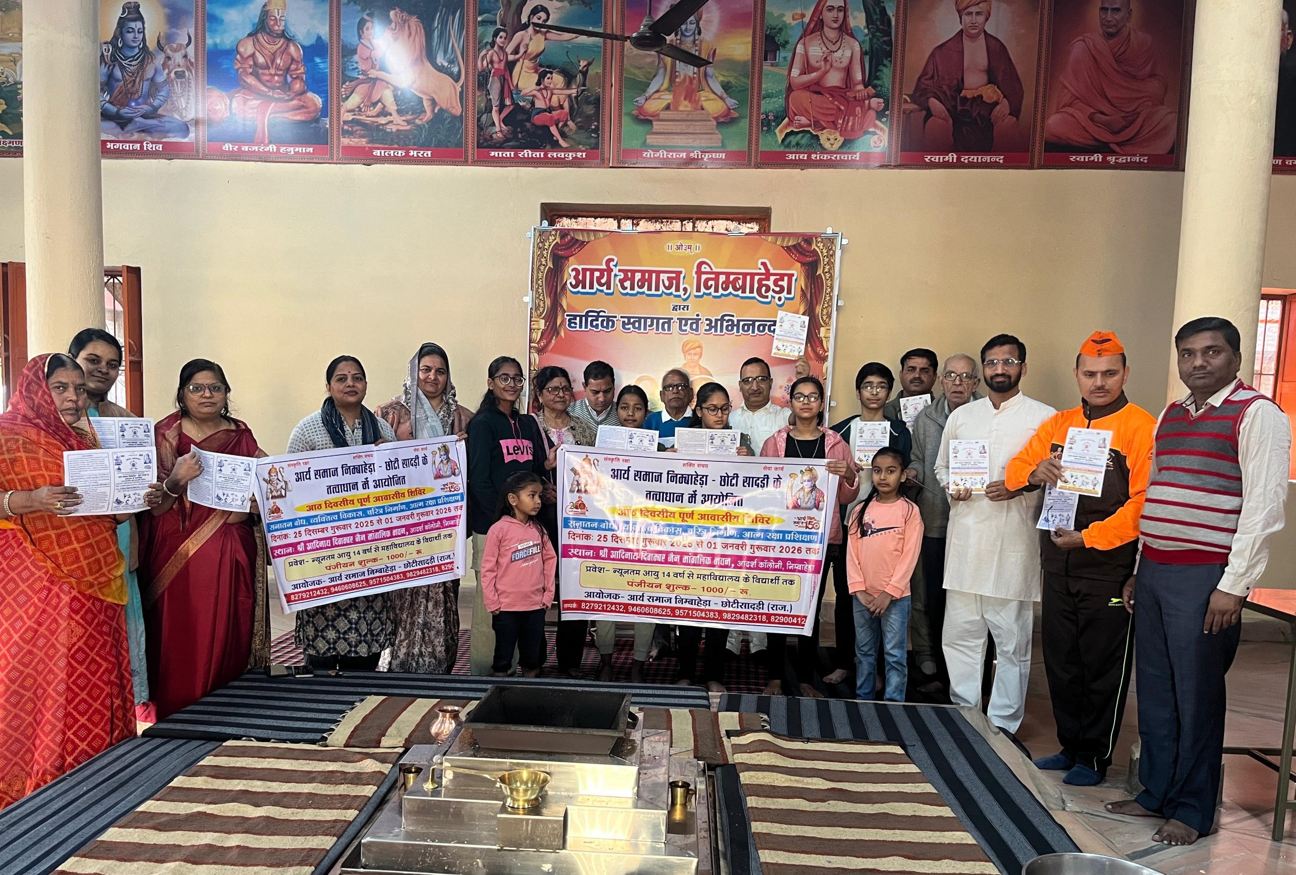 24 News Update निम्बाहेडा (कविता पारख)। 25 दिसम्बर 2025 से 1 जनवरी 2026 तक आर्य वीर दल के आठ दिवसीय पूर्ण आवासीय प्रशिक्षण शिविर के पोस्टर का विमोचन शांति नगर स्थित आर्य समाज भवन में किया गया।