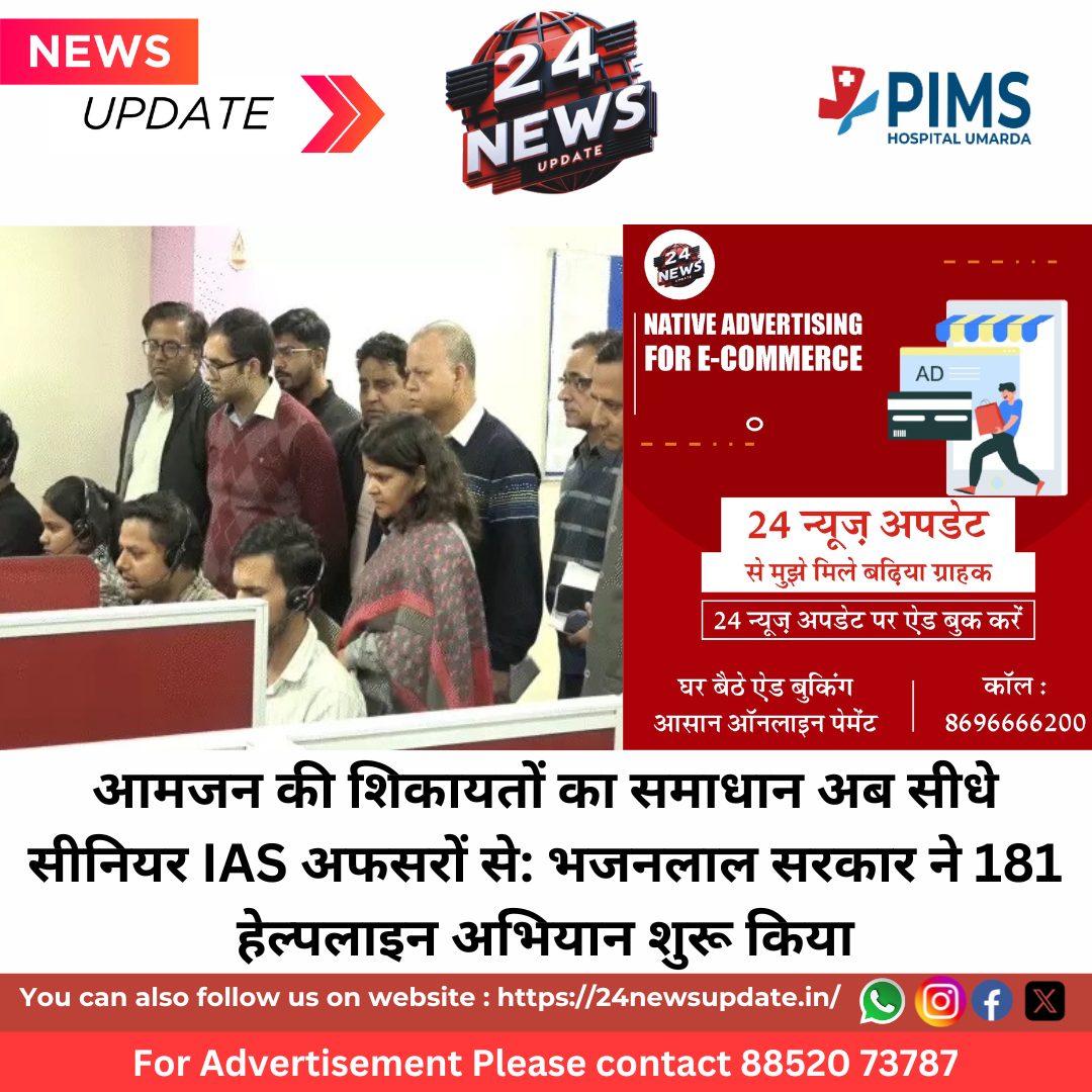24 News Update जयपुर। आम लोगों की लगातार बढ़ती समस्याओं और उनके समाधान में देरी को देखते हुए मुख्यमंत्री भजनलाल शर्मा ने प्रदेश के प्रशासनिक ढांचे में बड़ा बदलाव किया है। अब 35 वरिष्ठ आईएएस अधिकारी आईएएस अधिकारी राजस्थान संपर्क हेल्पलाइन 181 पर सीधे ड्यूटी करेंगे।