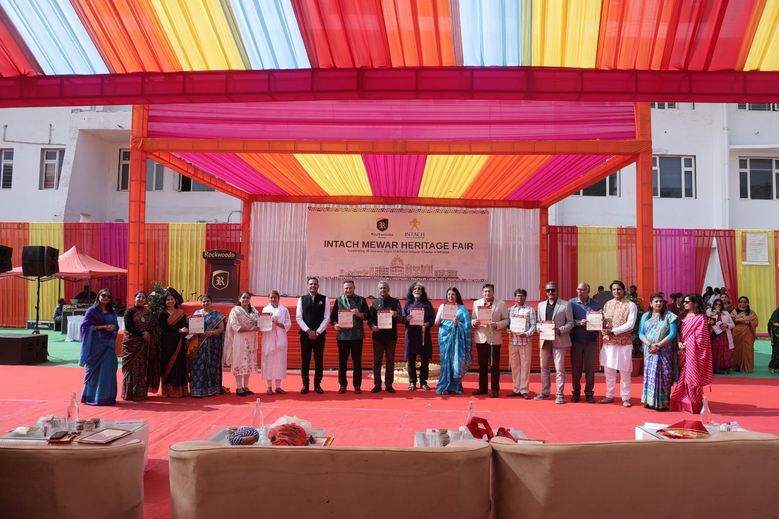 24 News Update उदयपुर। रॉकवुड्स स्कूल एवं इंटैक के संयुक्त तत्वावधान में एक भव्य इंटैक मेवाड़ हेरिटेज फेयर का आयोजन हुआ, जिसमें विद्यार्थियों ने राजस्थान की समृद्ध विरासत और लोक संस्कृति को आकर्षक एवं जीवंत प्रस्तुतियों के माध्यम से प्रदर्शित किया। कार्यक्रम की शुरुआत मुख्य अतिथि इंटैक के चेयरमैन श्री अशोक सिंह ठाकुर द्वारा दीप प्रज्वलन से हुई। अतिथियों का स्वागत मेवाड़ी पग, दुपट्टा एवं स्मृति चिन्ह भेंट कर किया गया।