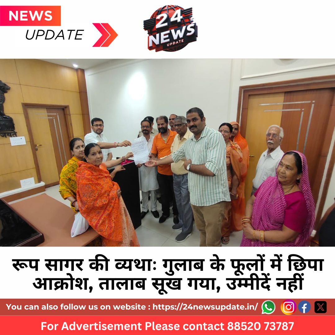 24 न्यूज अपडेट उदयपुर। उदयपुर के रूप सागर तालाब की किस्मत इन दिनों किसी पुराने सरकारी फाइल जैसी हो गई है। धूल खा रही है और किसी को परवाह नहीं। लेकिन जैसे ही चुनावी मौसम पास आता है, तालाब एक बार फिर ज़िंदा हो उठता है, नेताओं की बातों में, वादों में, और इस बार गुलाब के फूलों में भी। बुधवार को रूप सागर तालाब विकास संघर्ष समिति के सदस्य जब जिला कलेक्टर नमित मेहता से मिलने पहुंचे, तो हाथों में शिकायती आवेदन नहीं, गुलाब के फूल थे। गांधीवादी अंदाज़ में विरोध जताने पहुंचे ये लोग कोई नई बात नहीं कह रहे थे, बस वही पुराना दर्द दोहरा रहे थेकृतालाब को खत्म किया जा रहा है, उसकी जमीन पर महल जैसे मकान उग आए हैं और प्रशासन मूकदर्शक बना बैठा है।